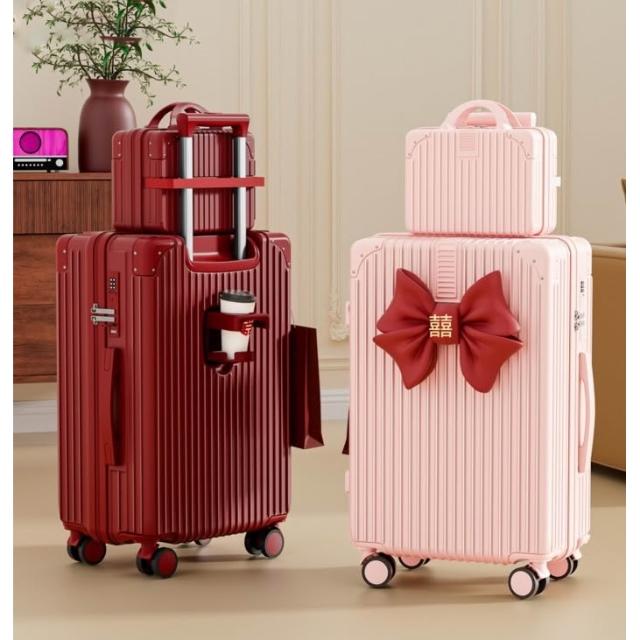 芮芮商行 紅色行李箱結婚陪嫁專用女方高級感加厚耐用24吋子母旅行密碼箱子
