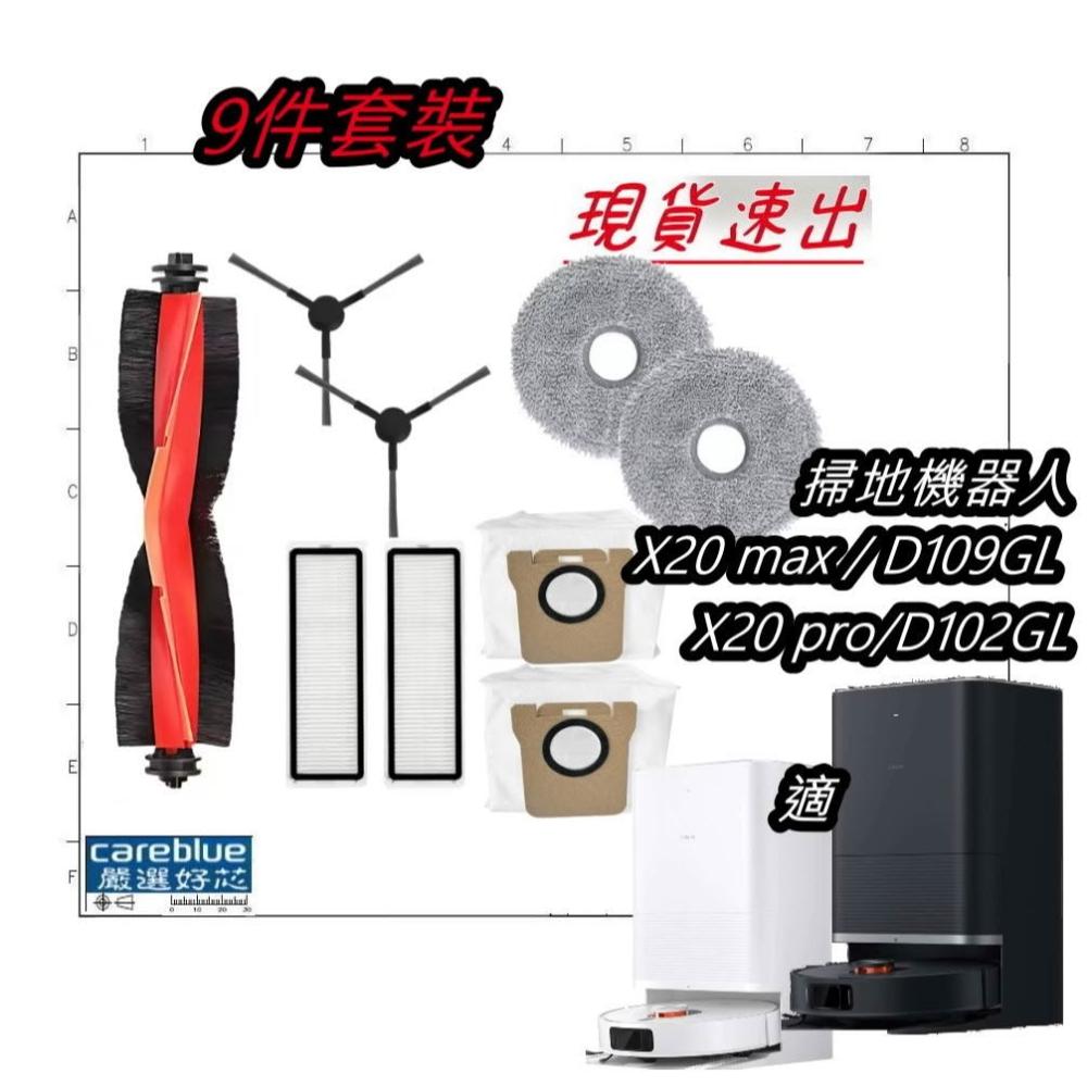9件套裝 適 XIAOMI 掃地機器人 X20 max / D109GL X20 PRO 滾刷 邊刷 濾網 集塵袋 耗材
