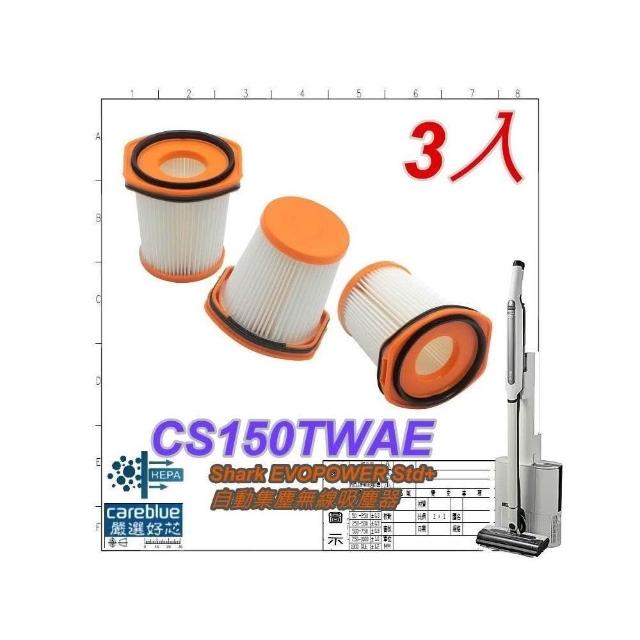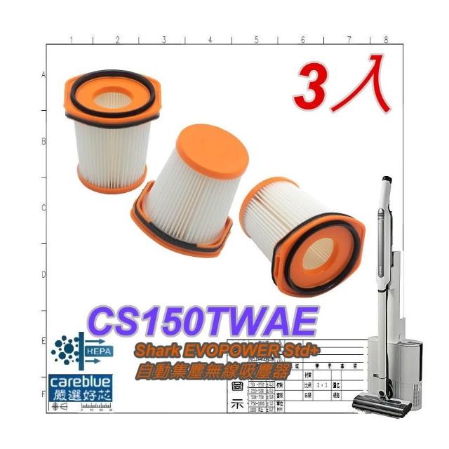 3入濾網 適用 Shark EVOPOWER Std+ 自動集塵無線吸塵器 型號: CS150TWAE
