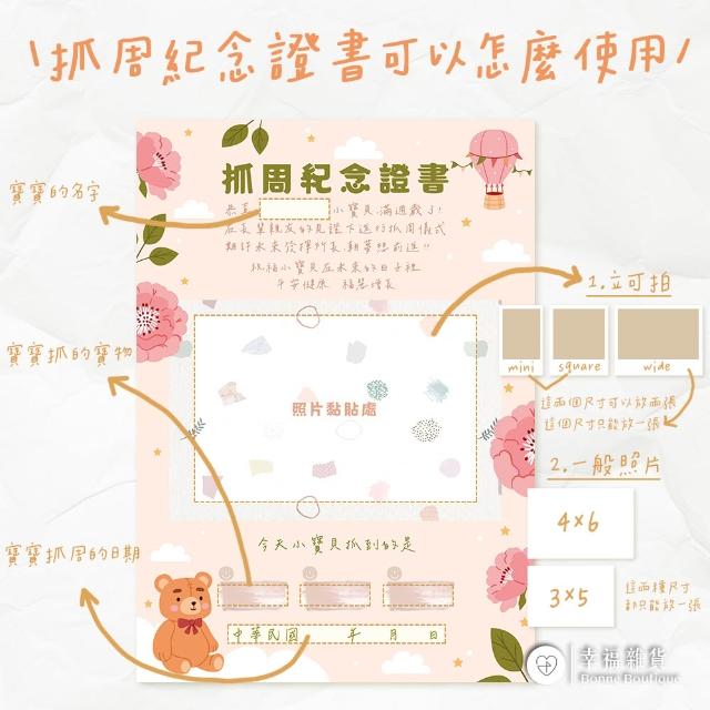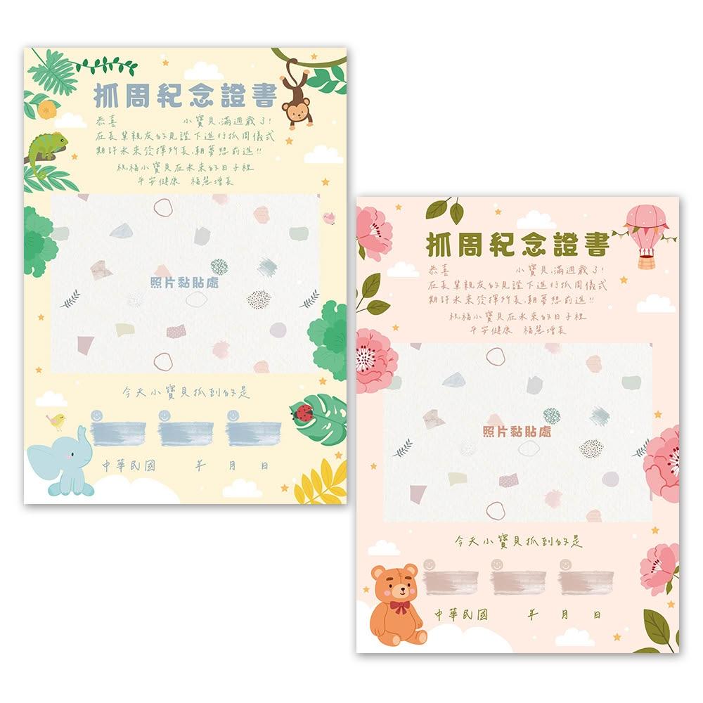 周紀念證書/抓周證書 腳印紀念 抓週 抓周儀式 抓周道具 抓周 厚磅【B&B幸福雜貨