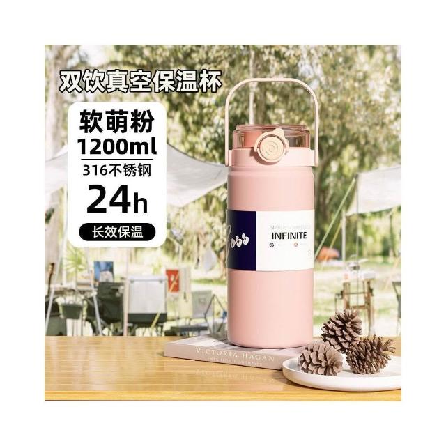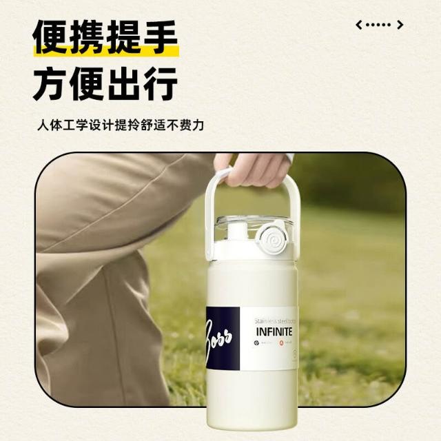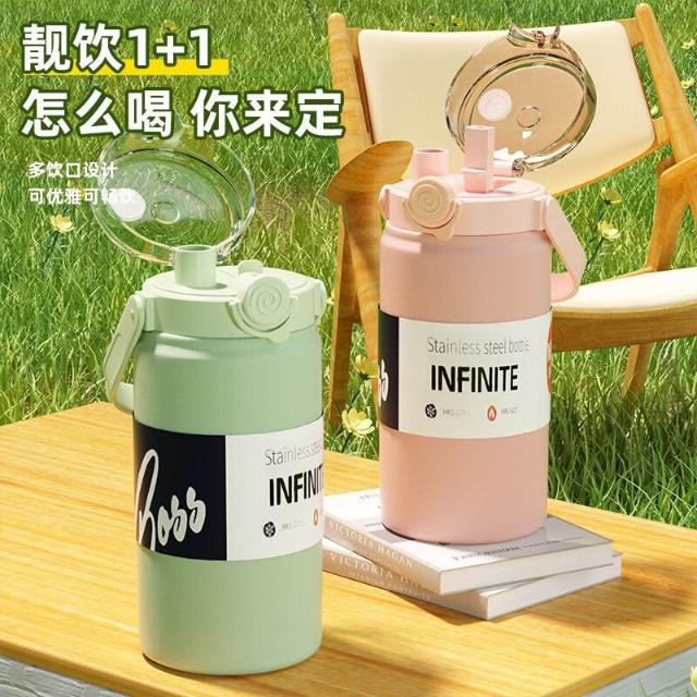 手提式水壺大容量彈蓋健身跑步吸管直飲水杯不鏽鋼保冰保溫杯輕量透明防摔耐高溫食品級上學學生水瓶外出高顏值隨行杯