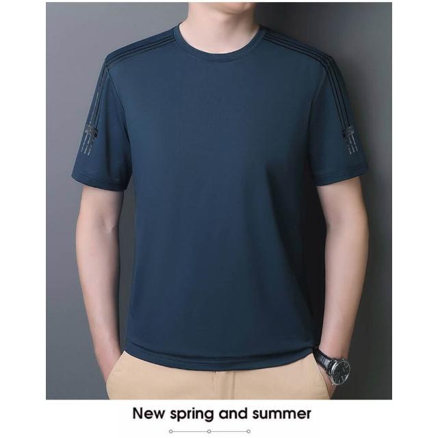 短袖上衣男大尺碼冰絲涼感衣運動短袖寬鬆跑步健走吸濕排汗衣冰涼休閒上衣速乾彈力涼感短袖透氣網眼登山健身薄短袖T恤男生中老年