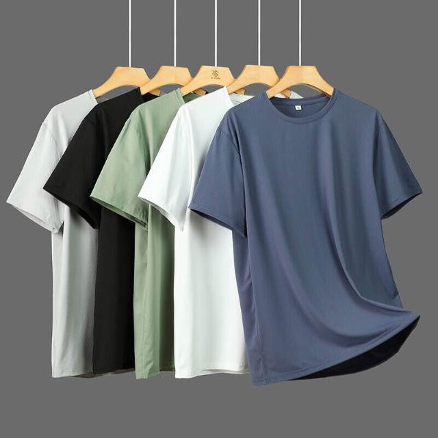 涼感衣男夏天戶外工作健身登山休閒服大尺碼輕薄透氣網眼冰絲衣吸濕排汗短袖速乾衣排汗衣寬鬆彈力冰絲涼感運動上衣速乾T恤青年