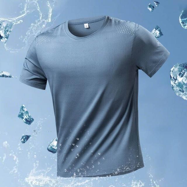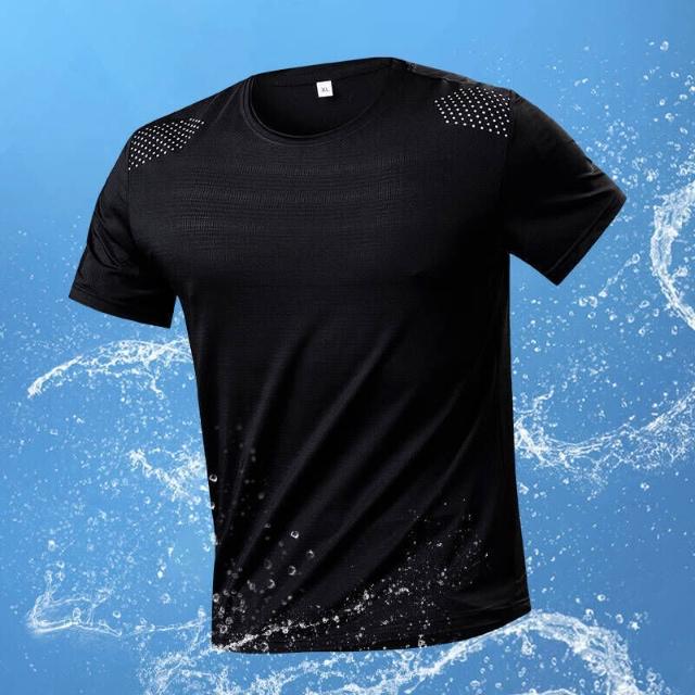 涼感衣男夏天輕薄冰絲透氣網眼衣吸濕排汗短袖速乾衣大尺碼戶外工作健身登山休閒服排汗衣寬鬆彈力冰絲涼感運動上衣速乾T恤青年