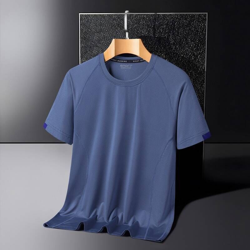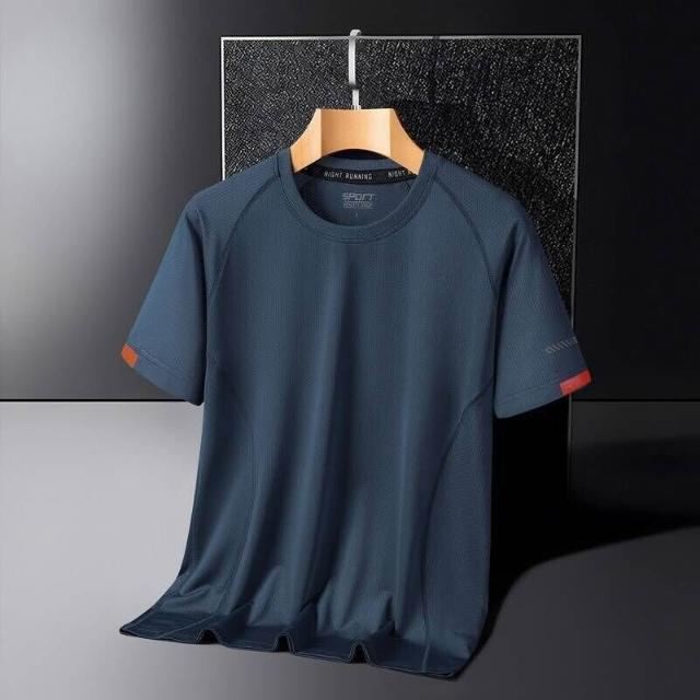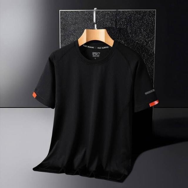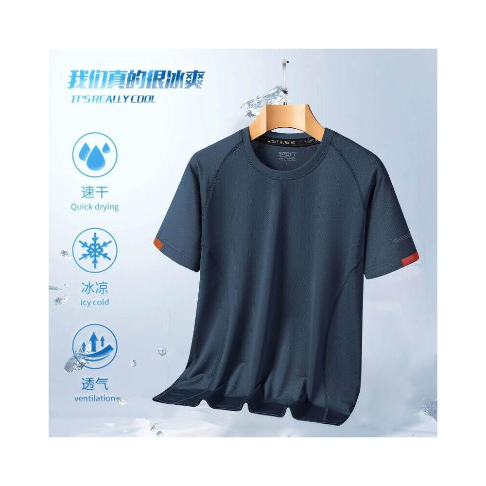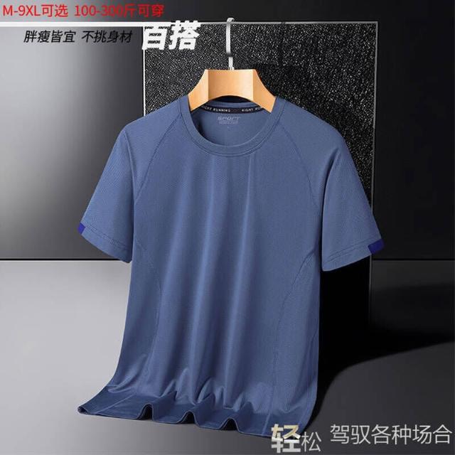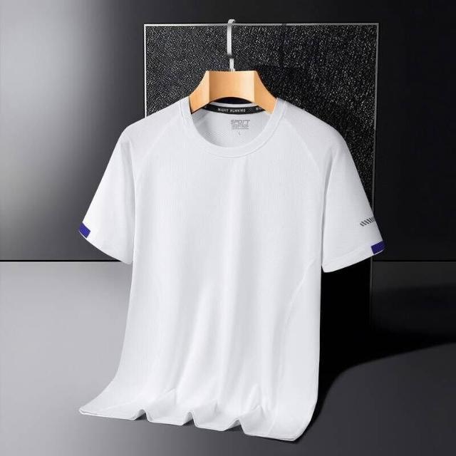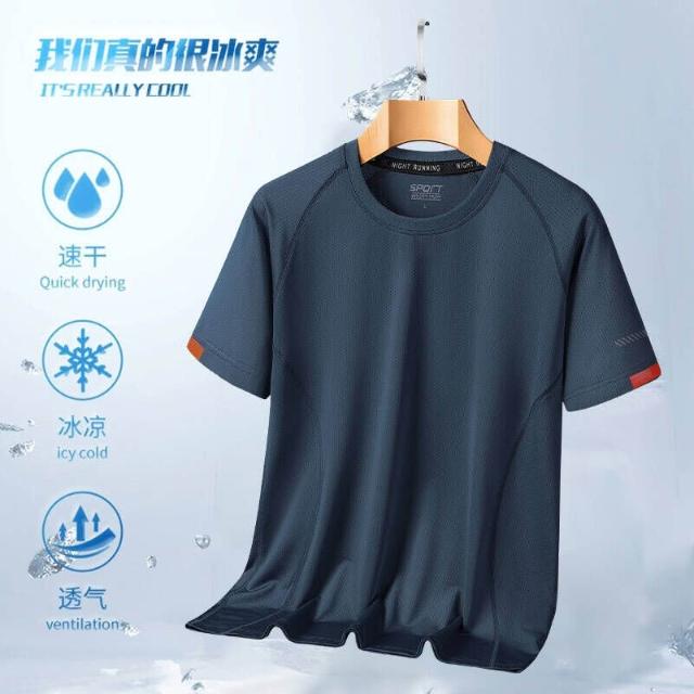 涼感衣男夏天輕薄透氣網眼冰絲衣吸濕排汗短袖速乾衣大尺碼戶外工作健身登山休閒服排汗衣寬鬆彈力冰絲涼感速乾T恤運動上衣青年