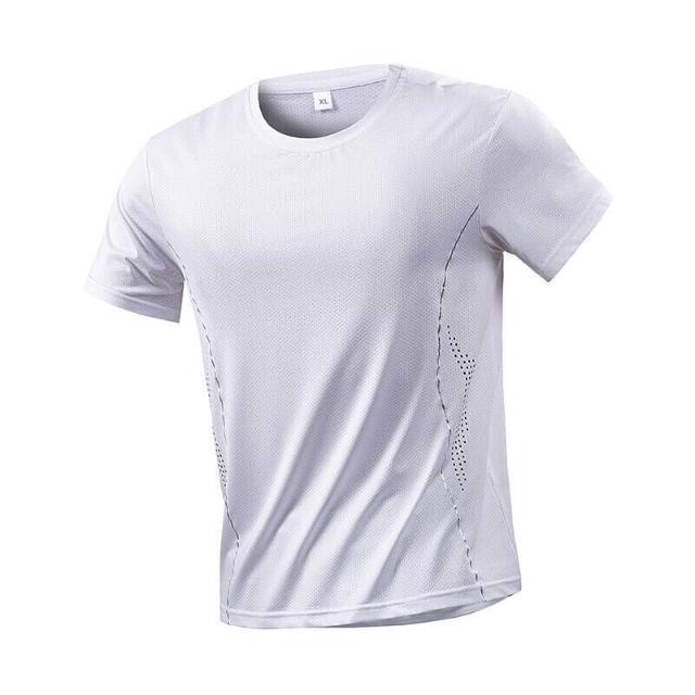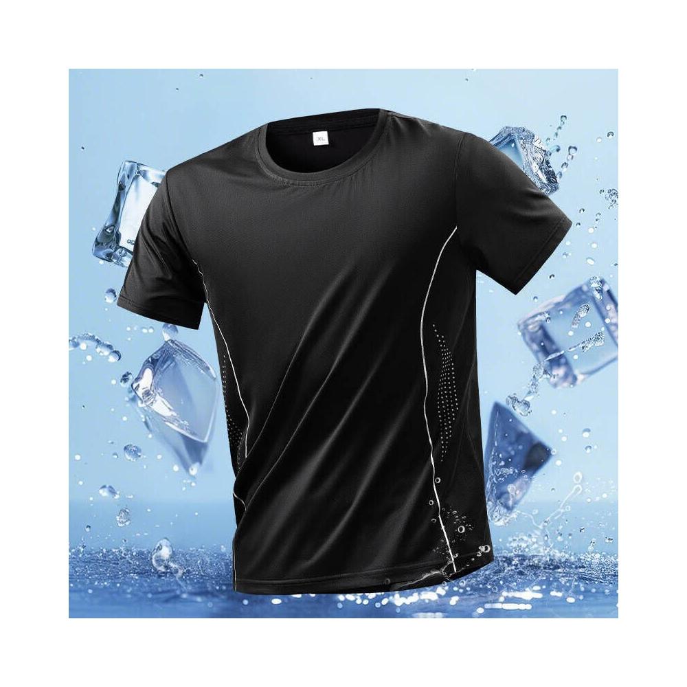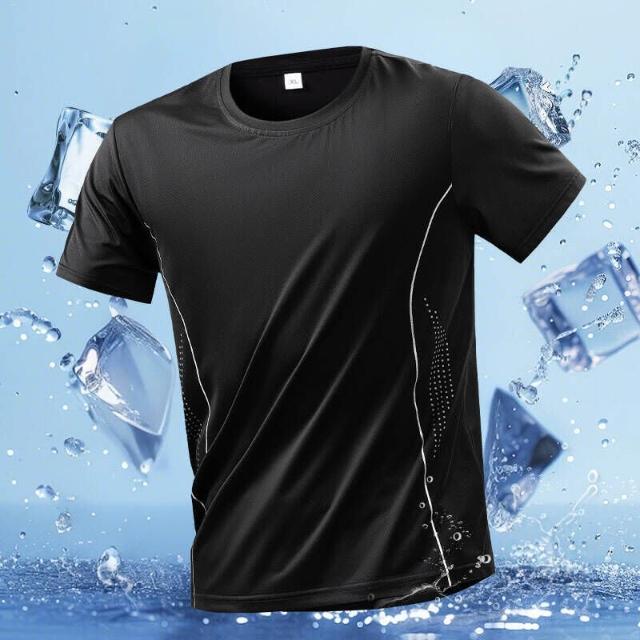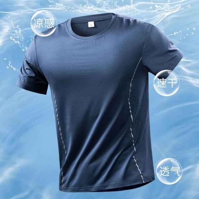 涼感衣男夏天輕薄透氣網眼冰絲衣休閒服排汗衣寬鬆彈力冰絲涼感運動上衣速乾T恤青年吸濕排汗短袖速乾衣大尺碼戶外工作健身登山服