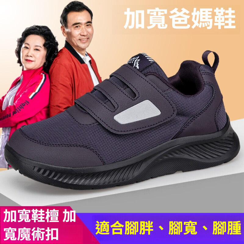 運動鞋女大尺碼镂空網面透氣耐磨慢跑鞋戶外跑步登山健身騎車休閒鞋防滑網鞋中年女鞋止滑健走鞋軟底彈力舒適輕量寬鬆魔術貼老人鞋