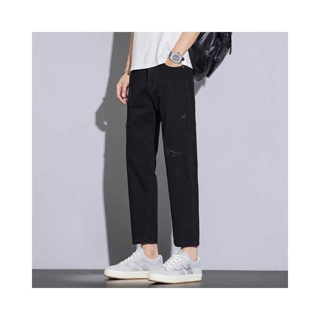 潮流破洞牛仔褲男春夏潮牌薄直筒哈倫褲痞帥男式休閑牛仔褲寬松百搭透氣彈性長褲百搭大呎碼商務直筒褲微喇褲美式柔軟舒適爸爸辦公