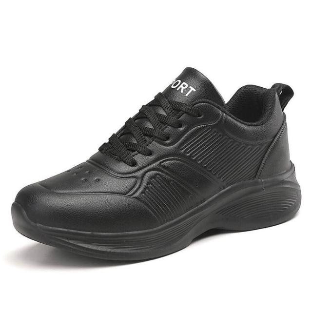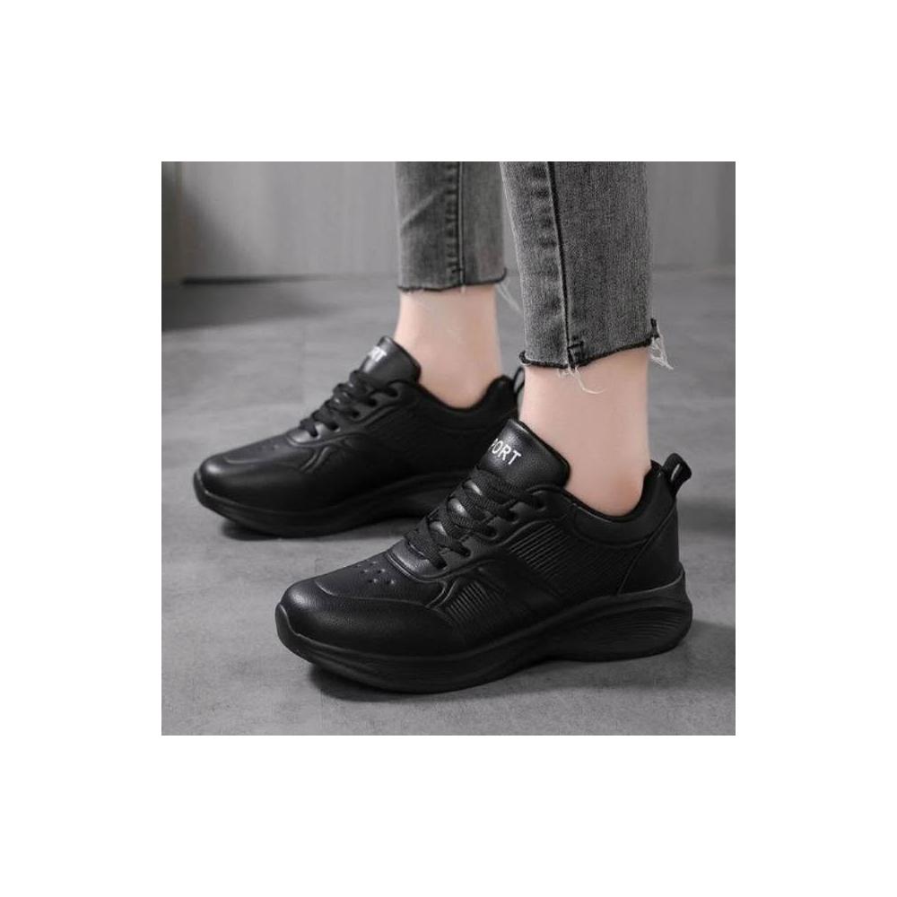 運動鞋女全黑色秋季皮面防水軟底輕便純黑色久站不累腳工作鞋大碼慢跑鞋透氣跑步鞋止滑登山鞋運動風休閒鞋久走不磨腳健行鞋健走鞋