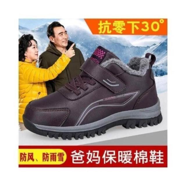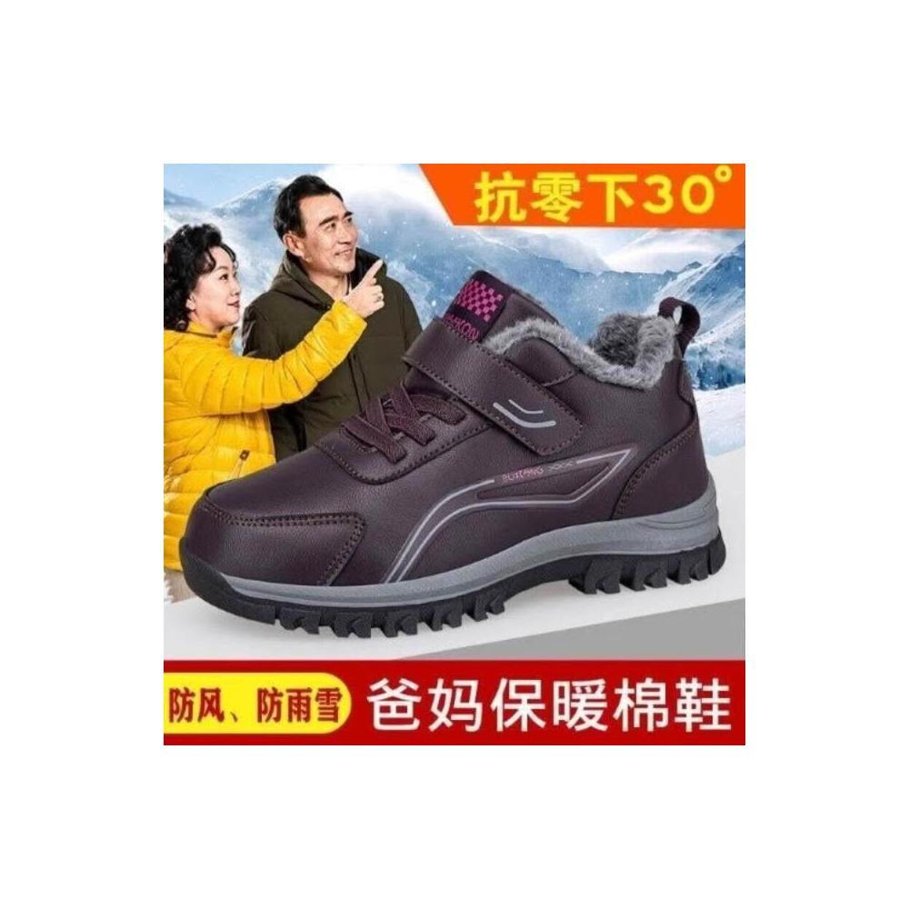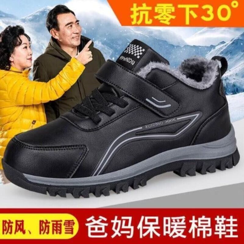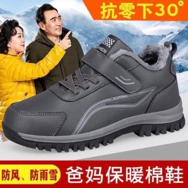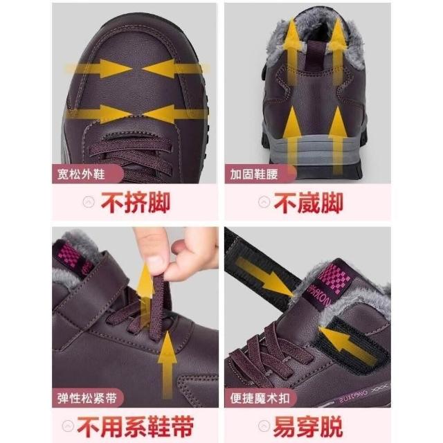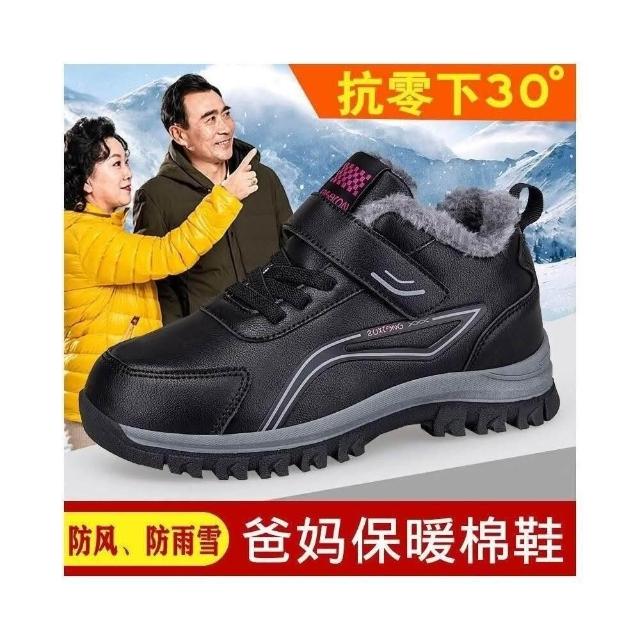 雪靴女男大尺碼運動鞋防風防水雪地靴防寒保暖鞋刷毛休閒鞋女款媽媽防滑鞋加絨戶外登山鞋中年爸爸健走鞋皮面棉鞋厚底老人鞋男鞋子