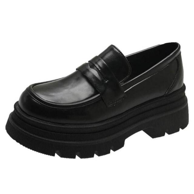 樂福鞋女厚底白色日系復古小皮鞋春秋季新款粗跟法式jk鞋子止滑耐磨瑪莉珍舒適真皮女鞋圓頭寬楦增高輕便平底鞋吸濕透氣一腳蹬鞋