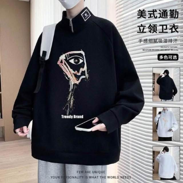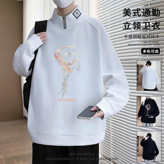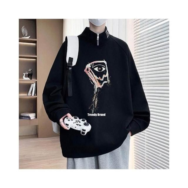 大學T重磅長袖上衣簡約寬鬆圓領衛衣衣服百搭Oversize長版大尺碼落肩美式立領t恤春秋冬款免燙男裝運動滿印塗鴉