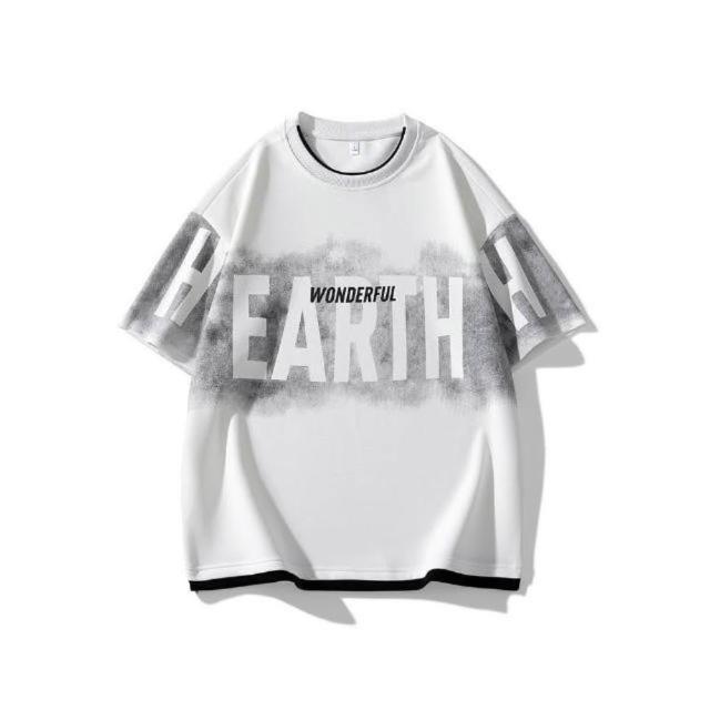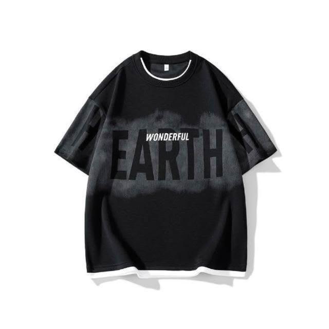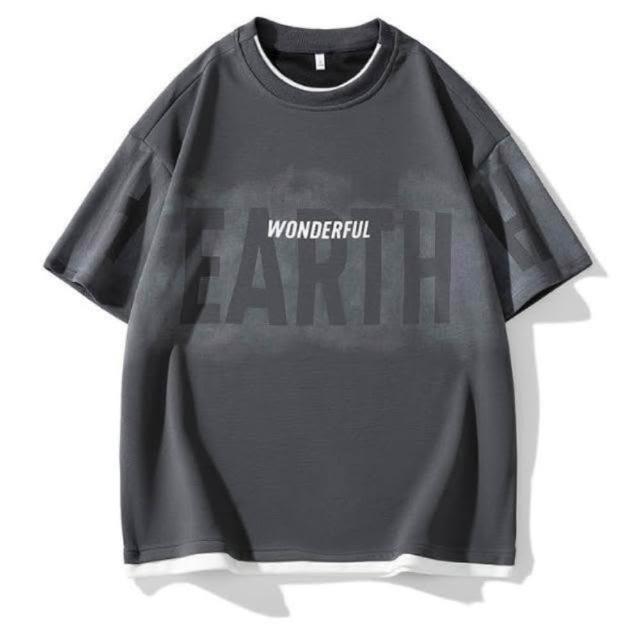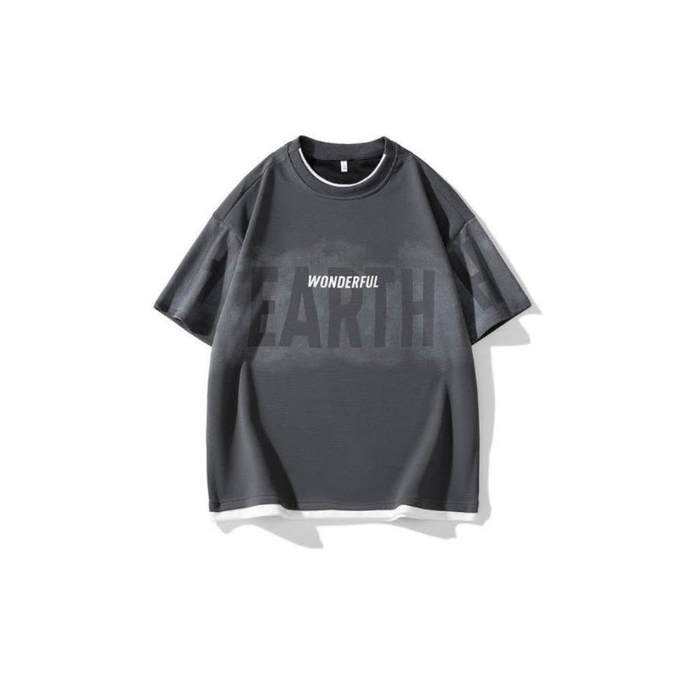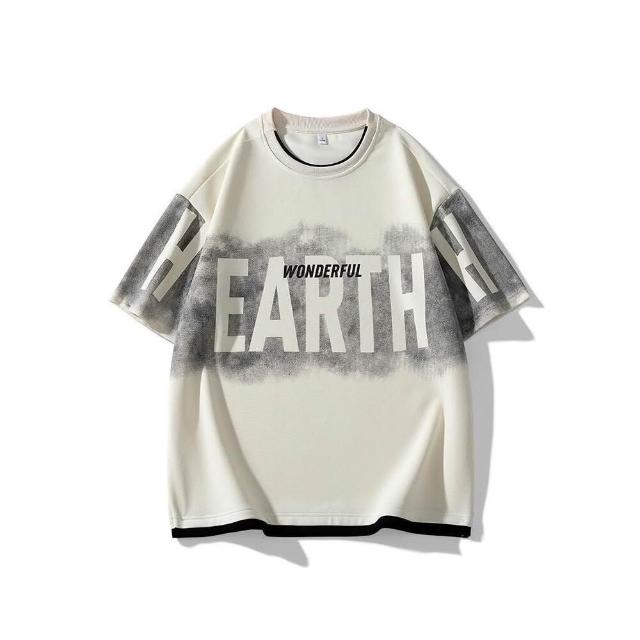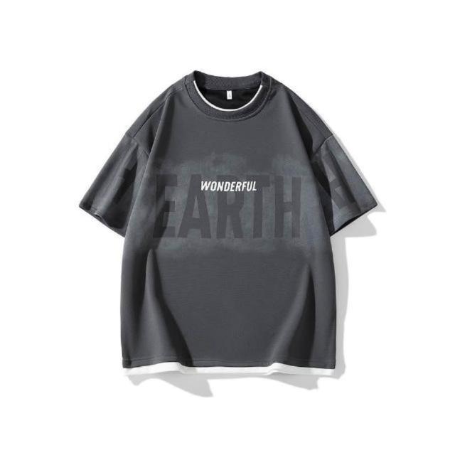 2026新款美式休閒 大尺碼 假兩件 上衣男 男生短袖 圓領半袖T 寬鬆 短袖上衣 圓領 短袖T恤男 男生上衣短袖 短T