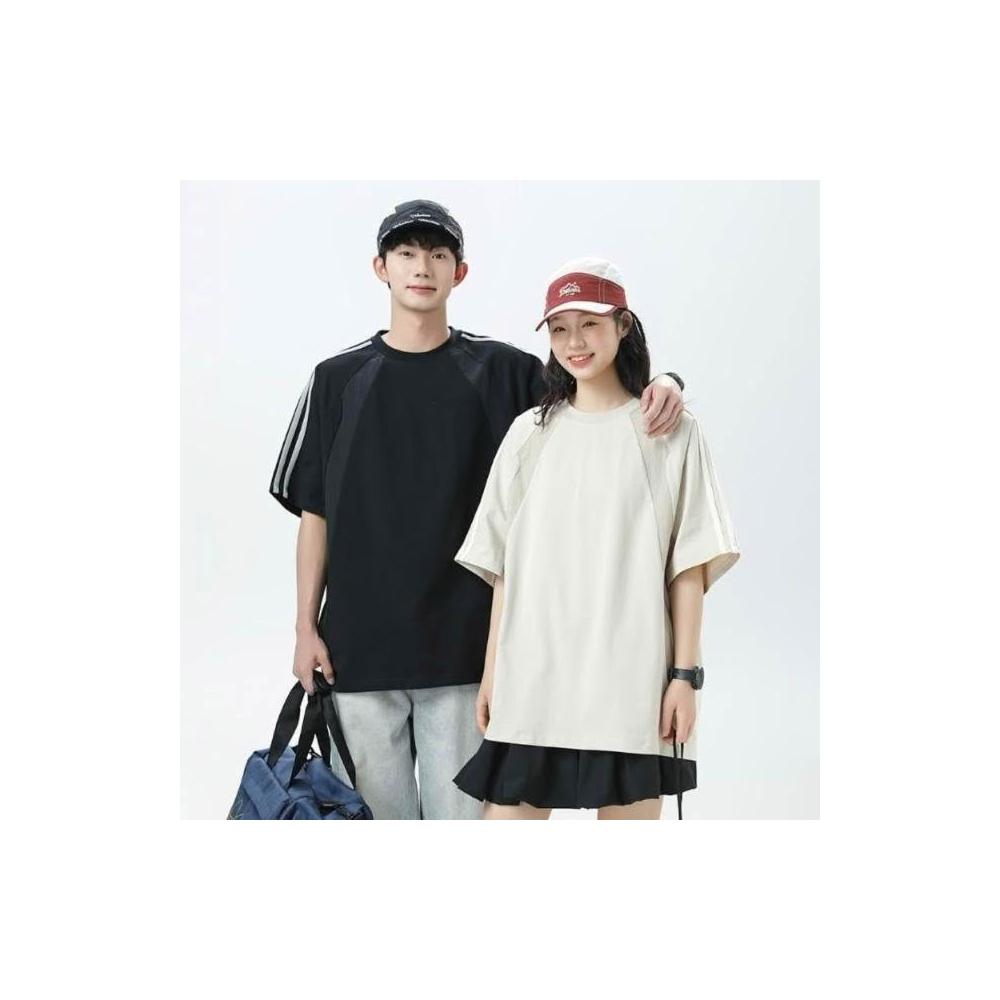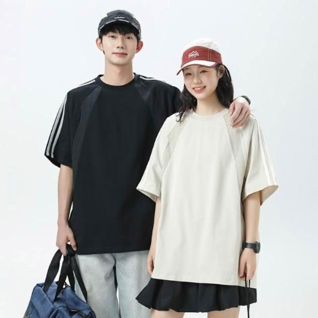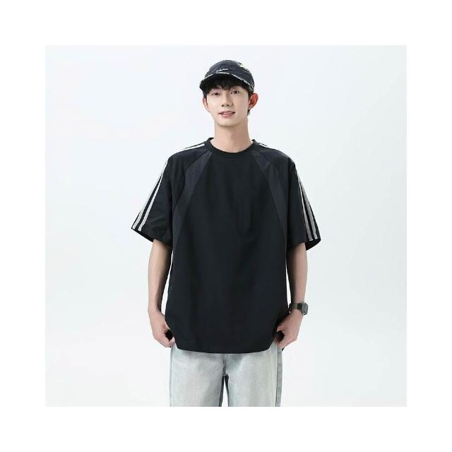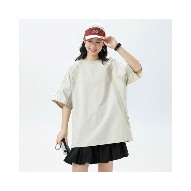 S-3XL 涼感衣 女白色上衣 女黑色上衣 圓領 短袖 夏季 速乾 T恤 寬鬆 拼接 短袖 短T 五分袖 上衣 男女