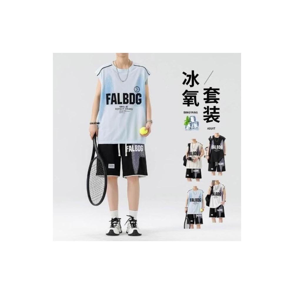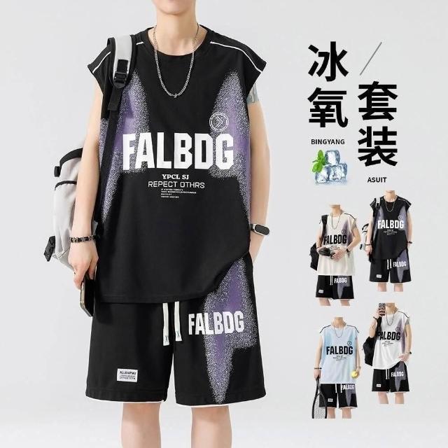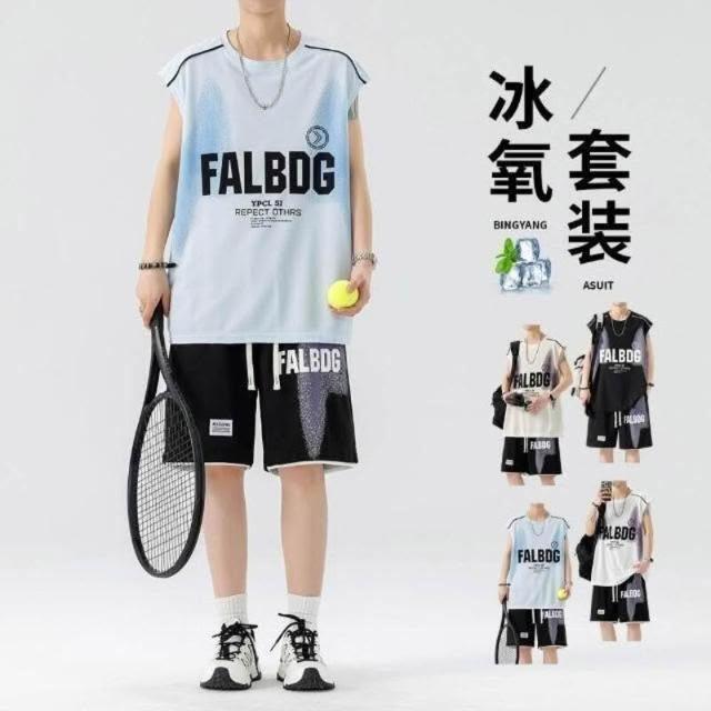 運動休閒套裝冰絲套裝男裝夏季新款百搭速幹印花套裝男潮流薄款兩件套帥氣一套短袖T恤時尚韓版潮男必備套裝運動短褲舒適休閒上衣