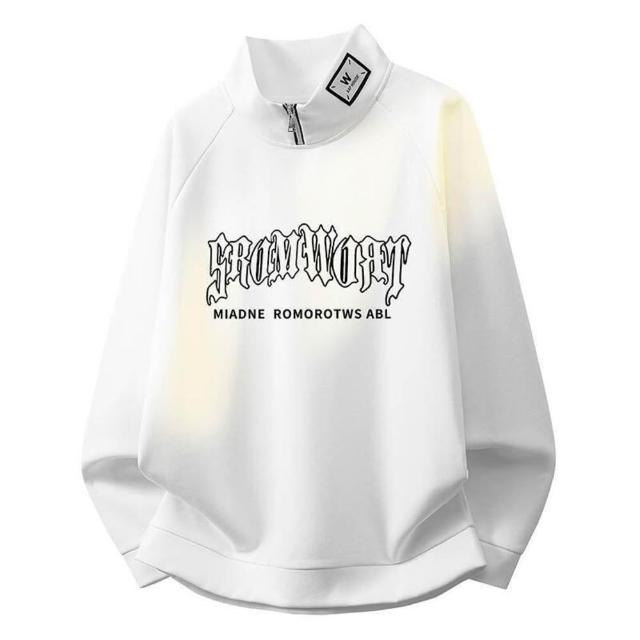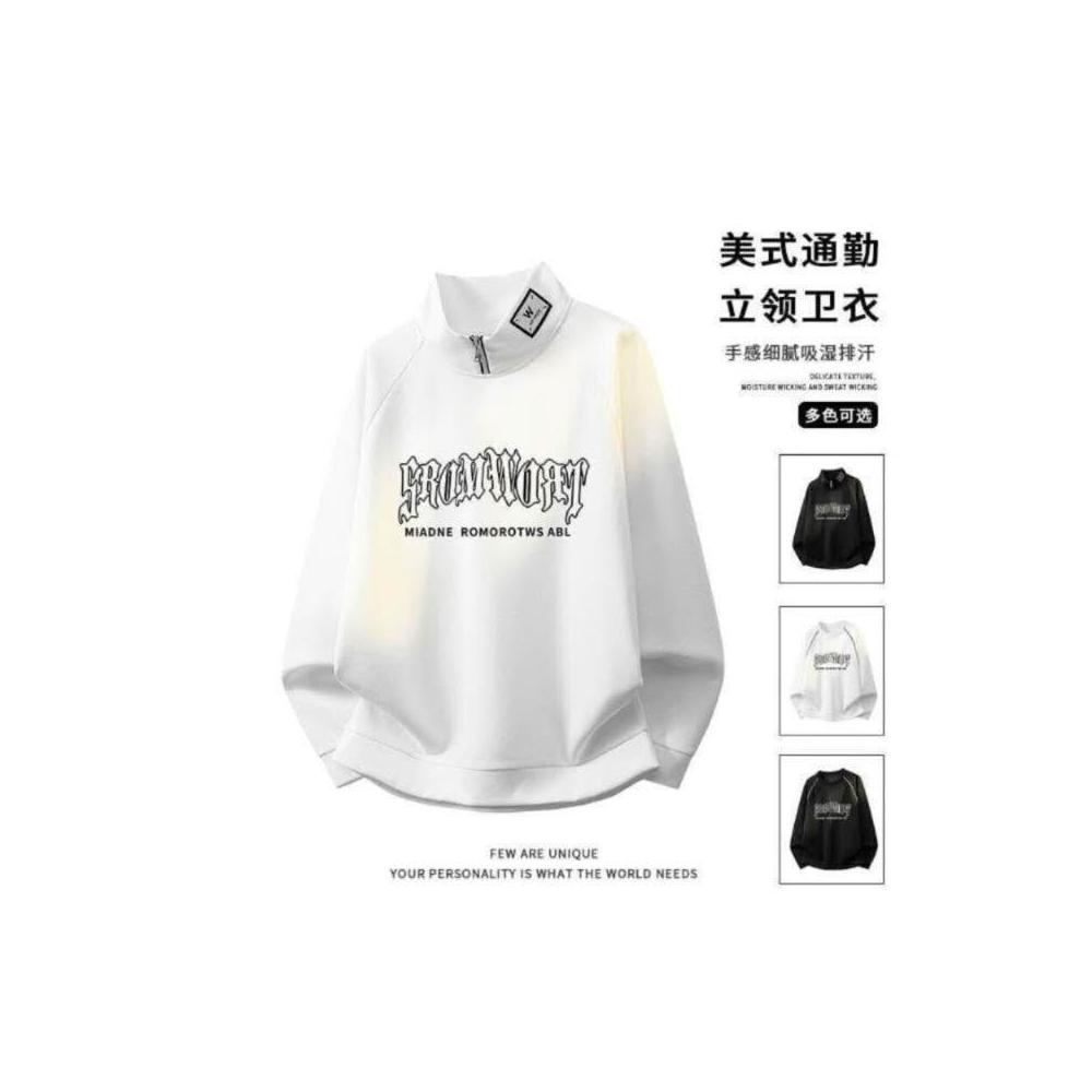 大學T重磅長袖上衣立領衛衣男生簡約寬鬆圓領衛衣衣服百搭Oversize長版大尺碼落肩t恤加絨春秋冬款免燙男裝運動滿印塗鴉