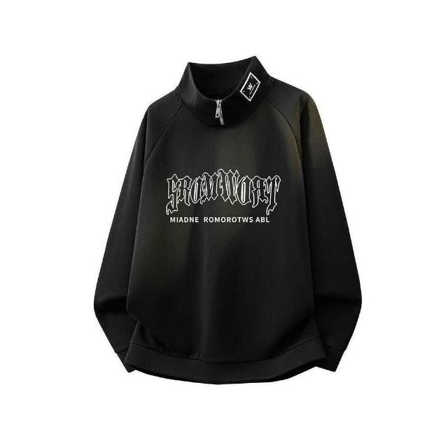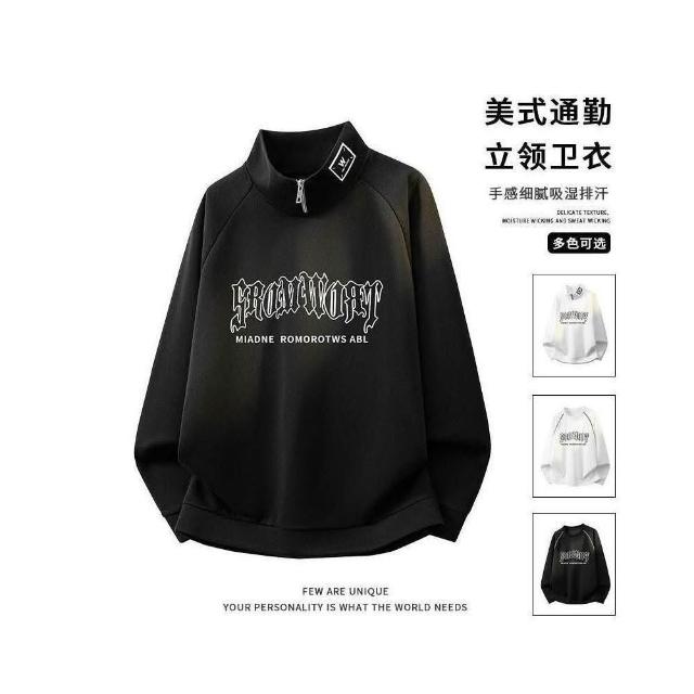 大學T重磅長袖上衣立領衛衣男生簡約寬鬆圓領衛衣衣服百搭Oversize長版大尺碼落肩t恤加絨春秋冬款免燙男裝運動滿印塗鴉