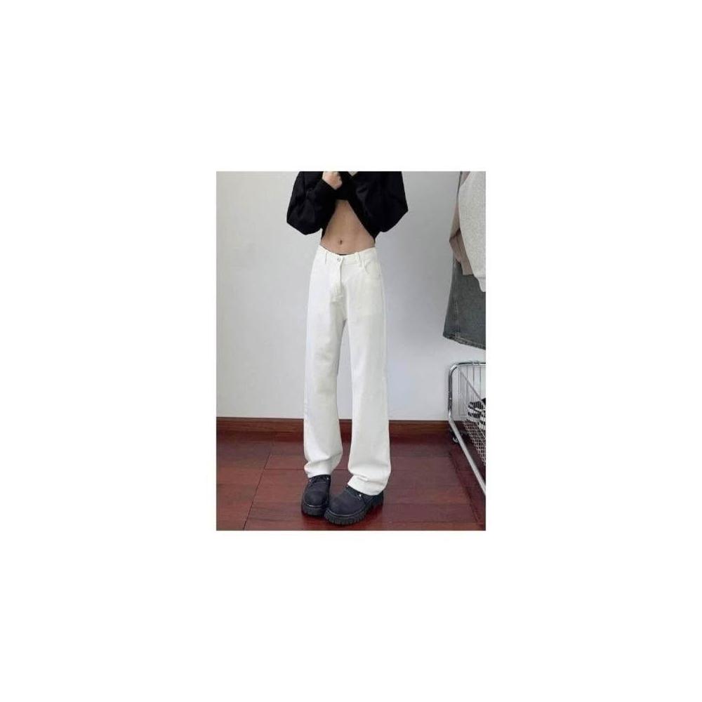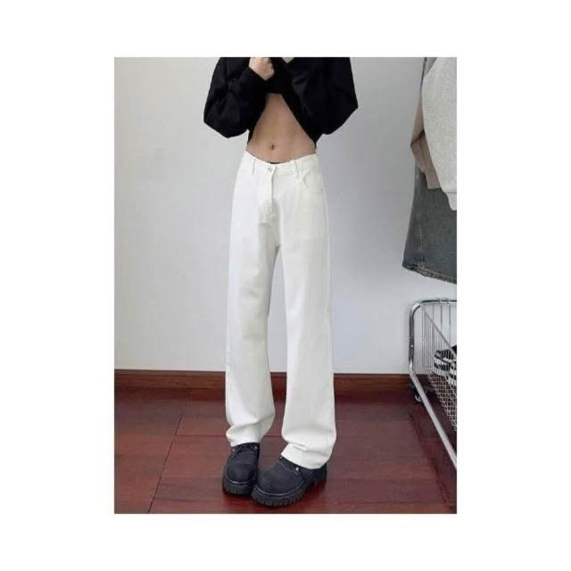 牛仔褲男女同款純色白色牛仔褲直筒修身顯瘦顯腿長牛仔褲女高腰牛仔長褲彎刀褲女顯瘦微喇牛仔褲直筒牛仔褲寬鬆牛仔寬褲