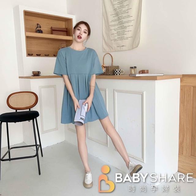 BabyShare時尚孕婦裝 A字傘狀短袖孕婦裙 (孕婦裝 洋裝)