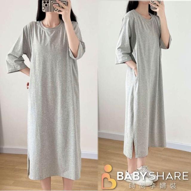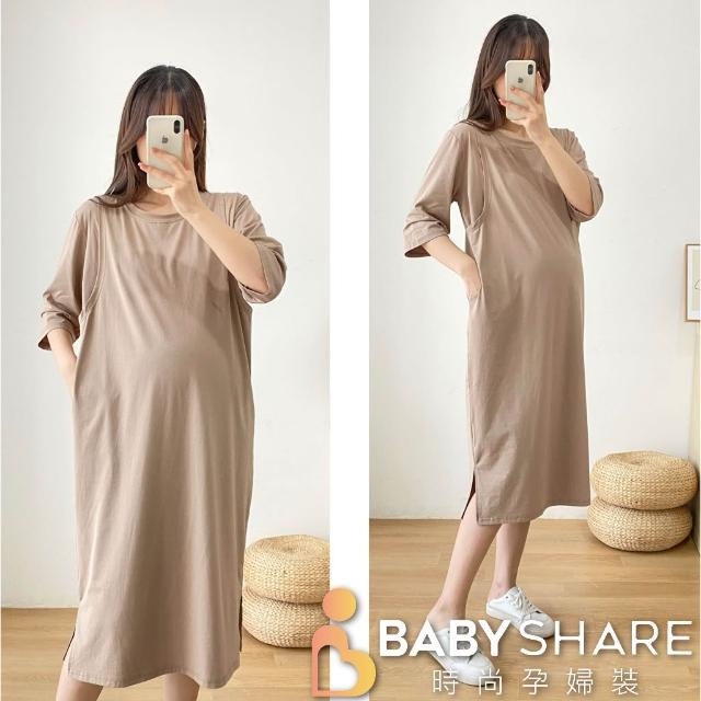 韓版寬鬆九色素色哺乳裙|明星媽咪款 有口袋 × 長版舒適 孕婦連衣裙 連身裙 BABYSHARE【J1S004D1R】