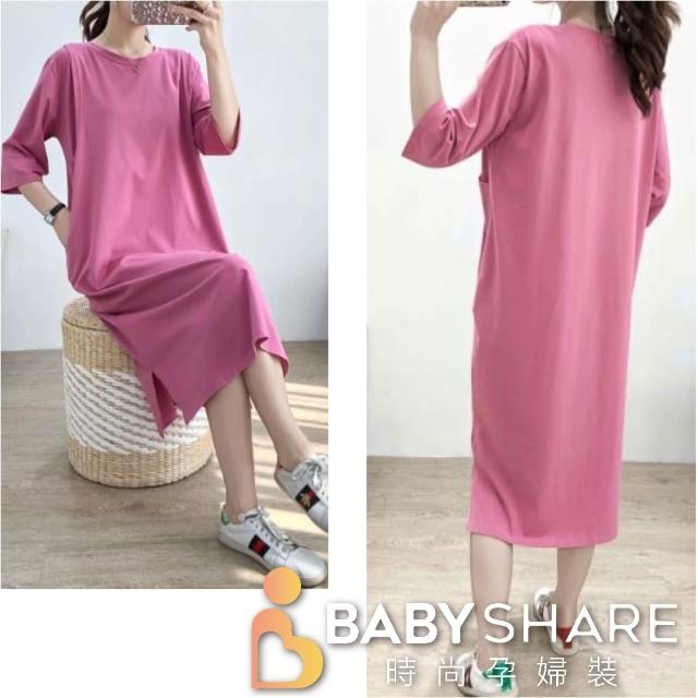韓版寬鬆九色素色哺乳裙|明星媽咪款 有口袋 × 長版舒適 孕婦連衣裙 連身裙 BABYSHARE【J1S004D1R】