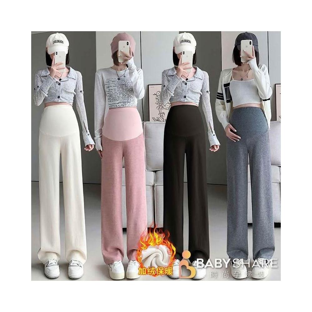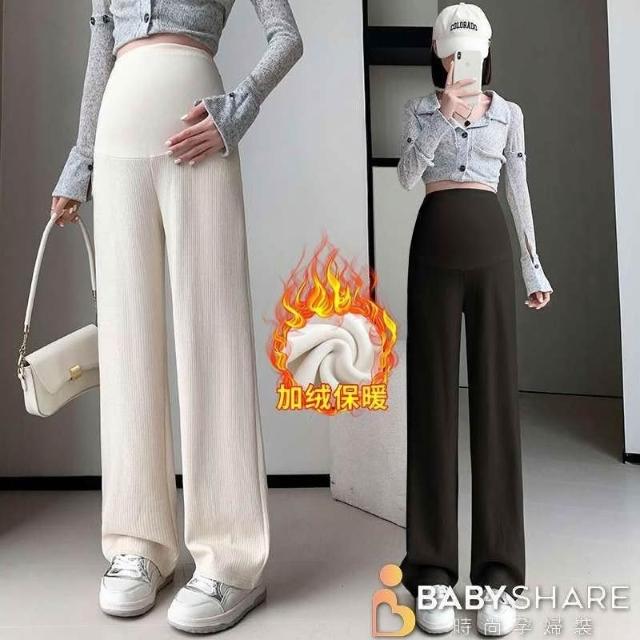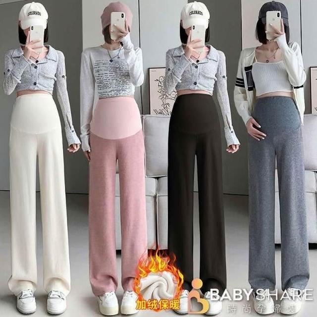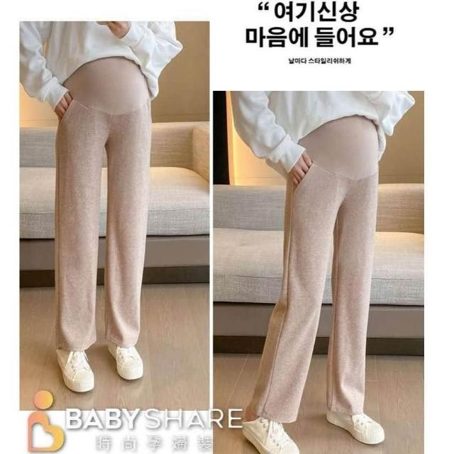 加絨坑條托腹孕婦長褲 孕婦褲 孕婦裝 BabyShare時尚孕婦裝【KRL031I2R】