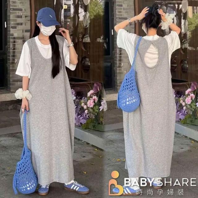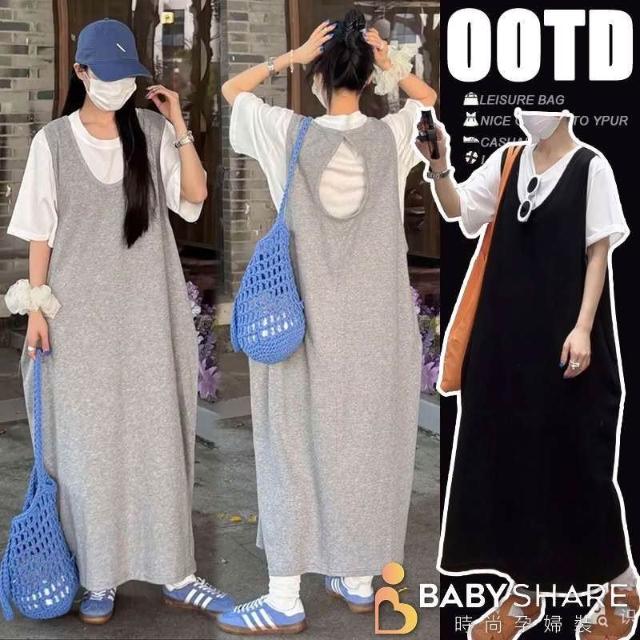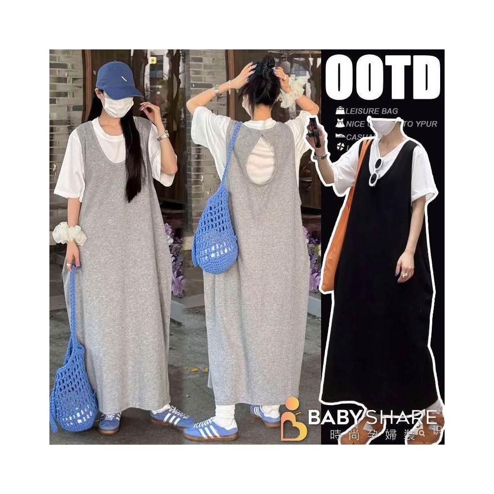 挖背口袋背心裙附贈內搭T 孕婦裝 BabyShare時尚孕婦裝【OBS018D5L】