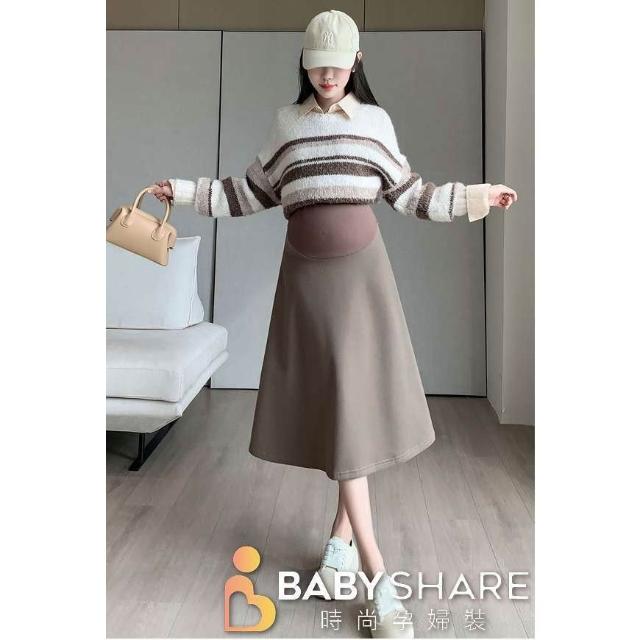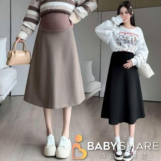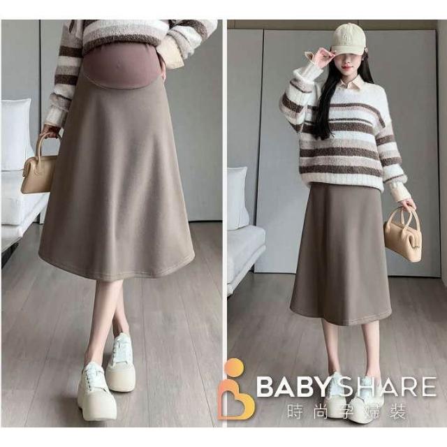 零碼特價 毛呢半身托腹孕婦長裙 孕婦褲 孕婦裝 BabyShare時尚孕婦裝【KRS012J4R】