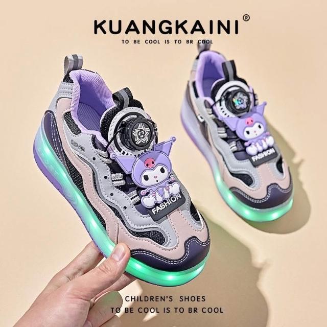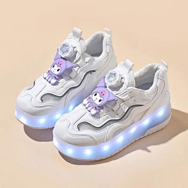 暴走鞋 運動鞋庫洛米女童運動鞋夏季新款兒童旋轉扣亮燈暴走鞋中大童輪滑鞋