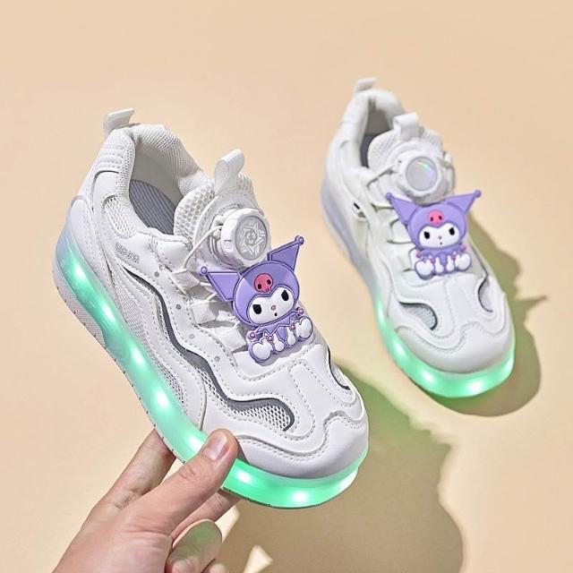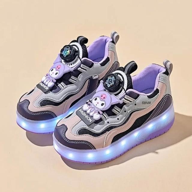 暴走鞋 運動鞋庫洛米女童運動鞋夏季新款兒童旋轉扣亮燈暴走鞋中大童輪滑鞋