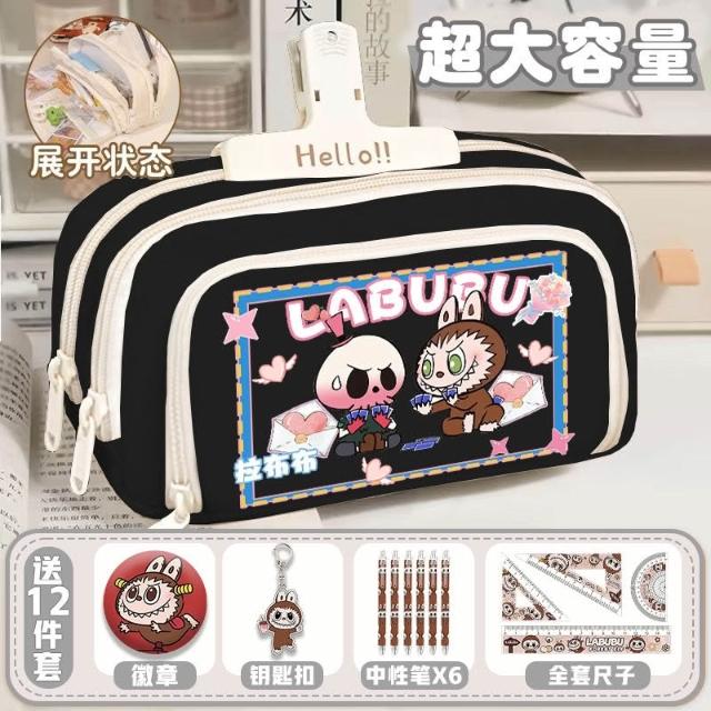 拉布布筆袋卡通高顏值文具週邊泡泡瑪特LABUBU聯名帆布收納鉛筆盒