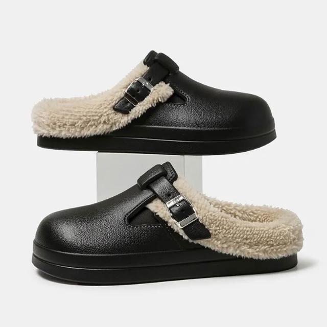 厚底棉拖鞋女秋冬季室內家居加絨保暖復古勃肯鞋百搭外穿防水棉拖