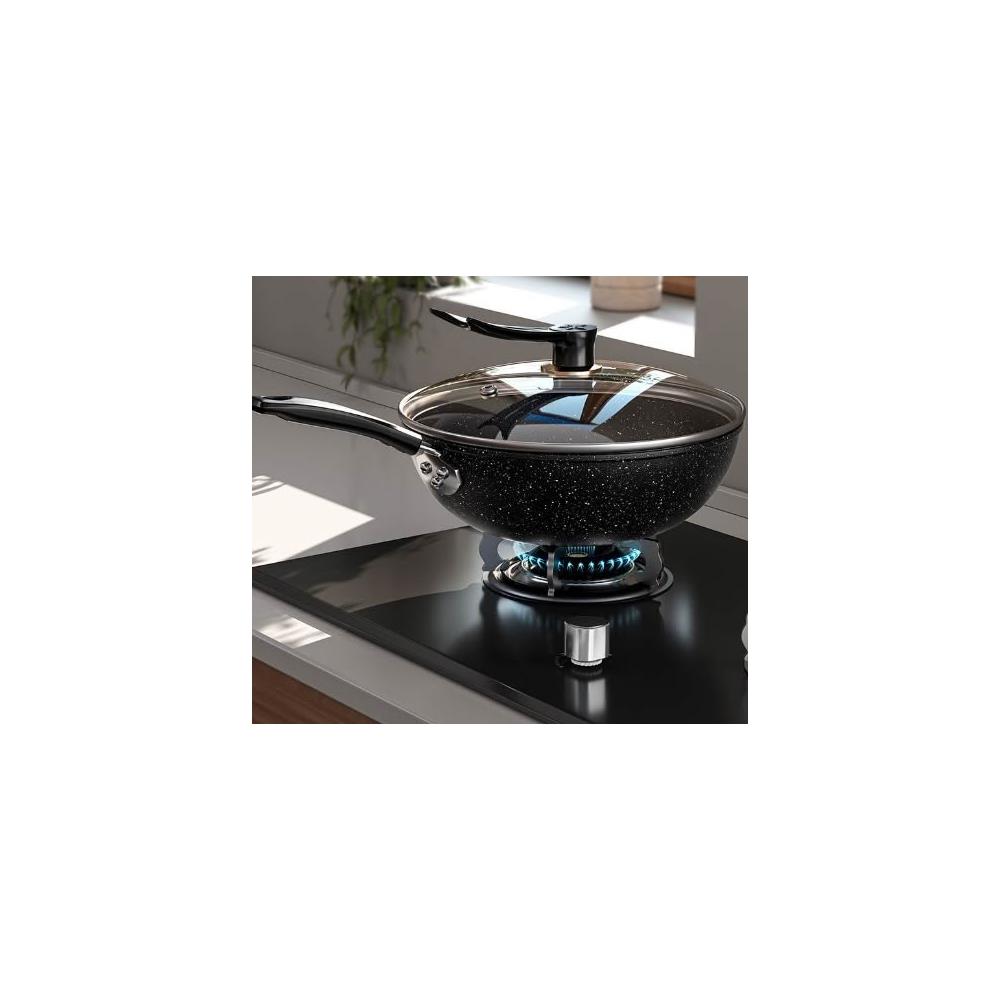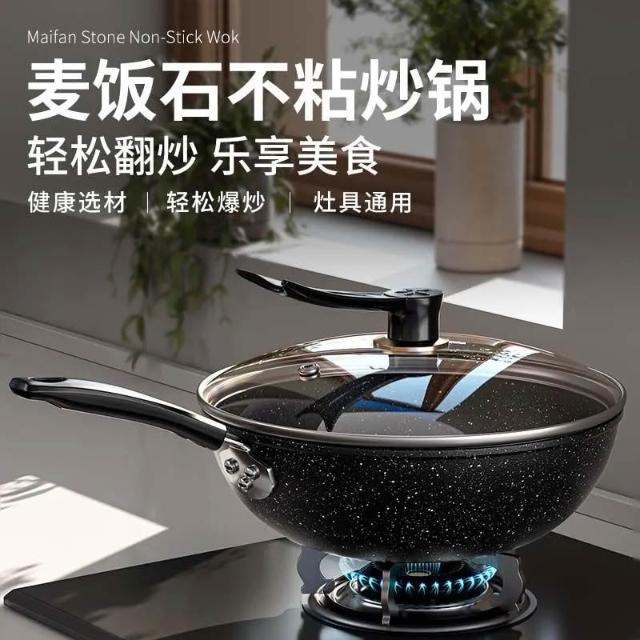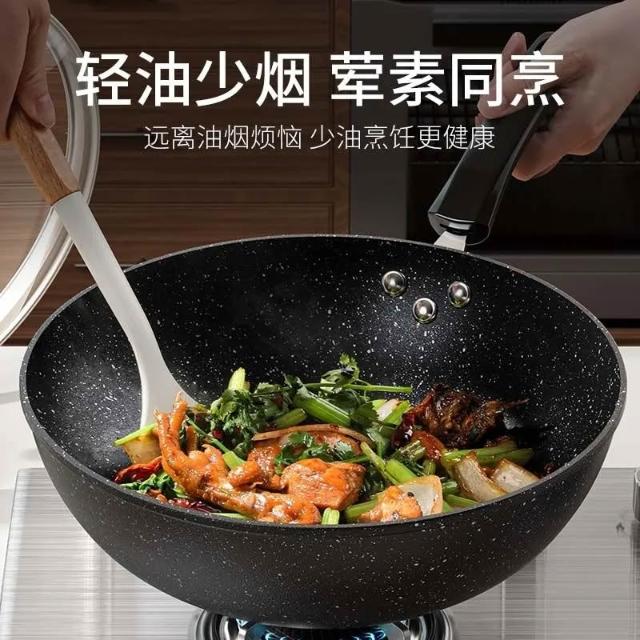 麥飯石不沾鍋家用炒鍋輕油煙炒菜鍋廚房輕量平鍋電磁爐專用鍋燃氣