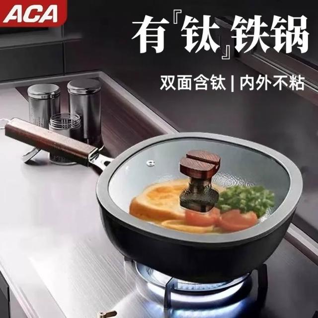 有鈦炒鍋鐵鍋平底不沾鍋無氟塗層炒菜鍋家用一人食電磁爐瓦斯通用