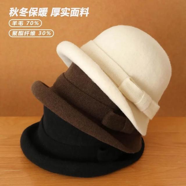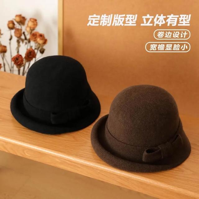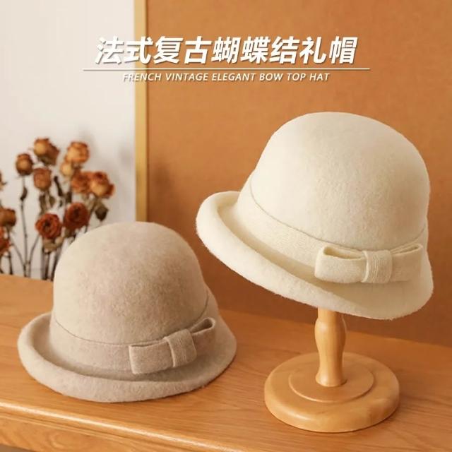 高級感捲邊毛呢禮帽女法式復古蝴蝶結漁夫帽優雅高貴千金風帽子冬