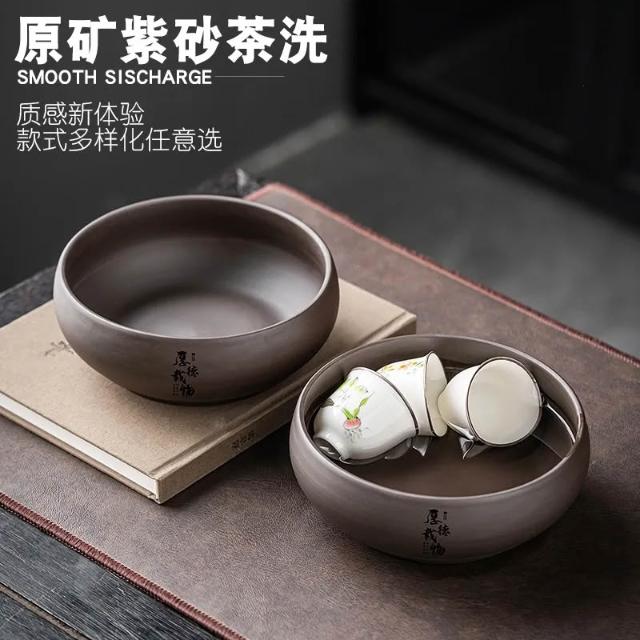 茶洗杯洗筆洗茶渣缸原礦紫砂復古洗茶杯杯專用盆