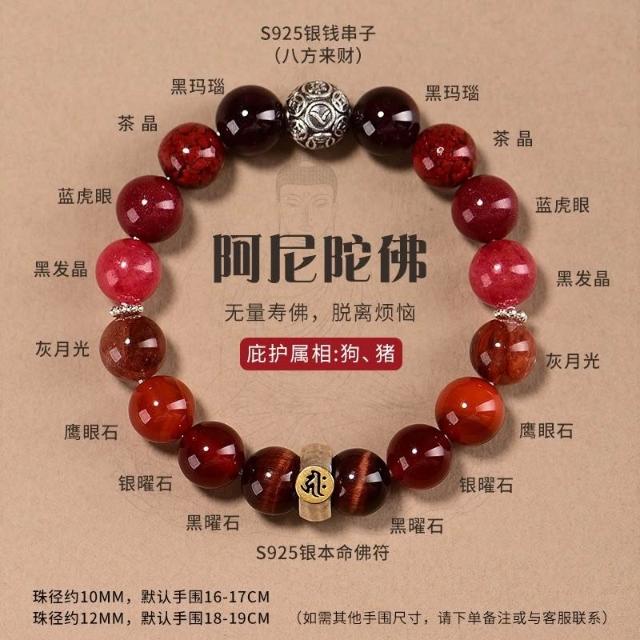 十二生肖本命年八大守護神手錬生肖羊屬猴招金錢串子天然水晶手錬