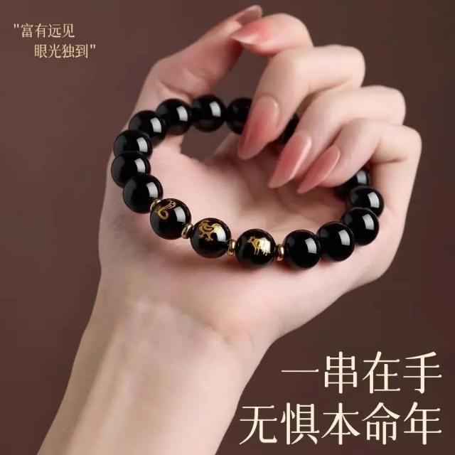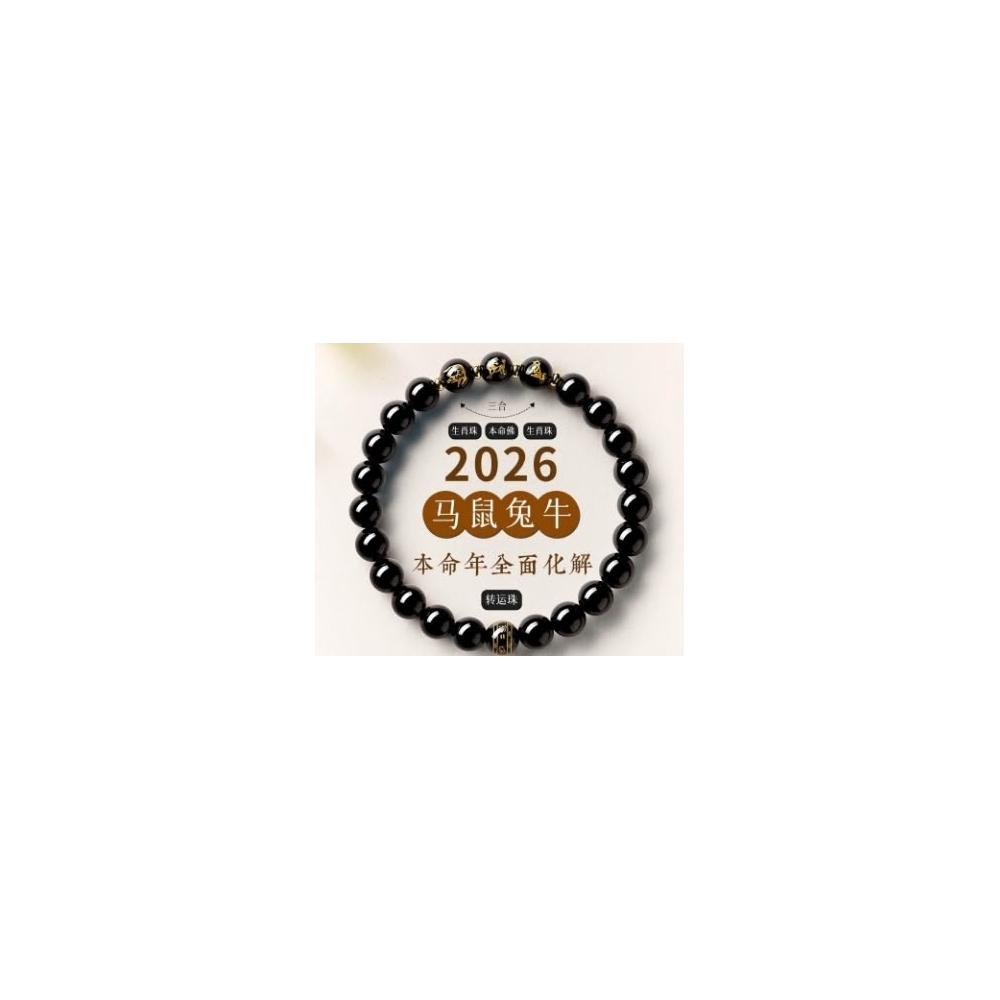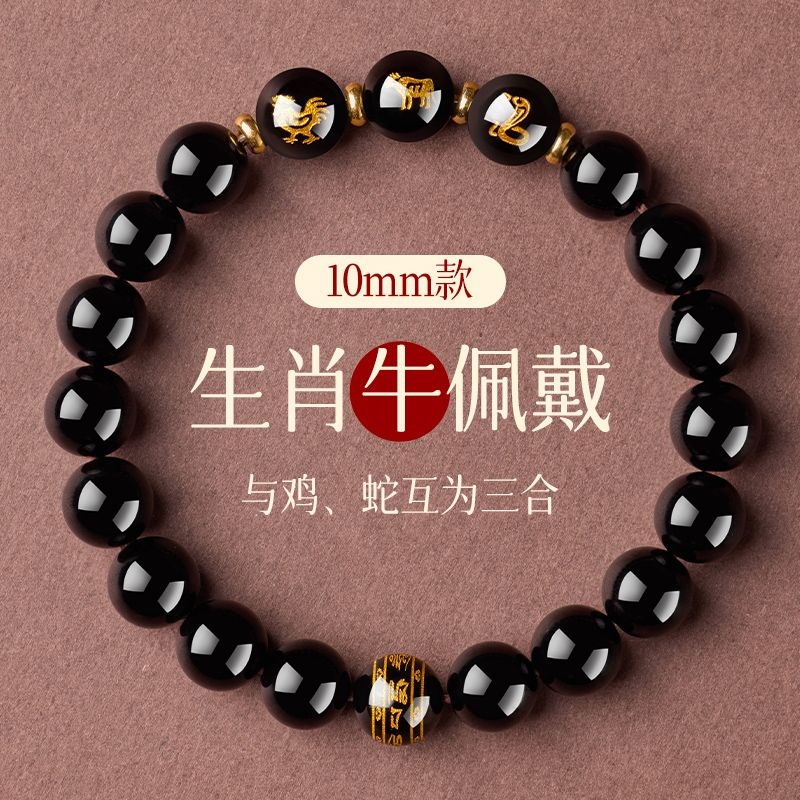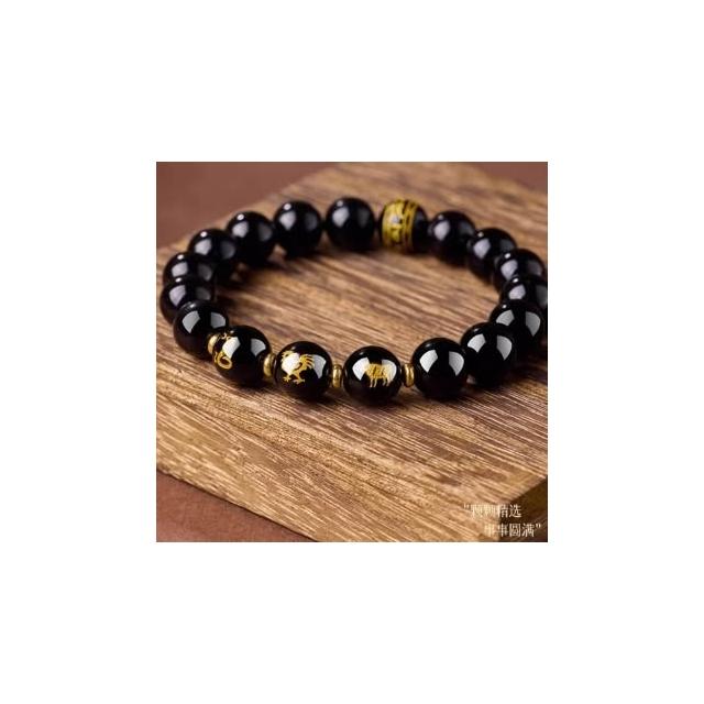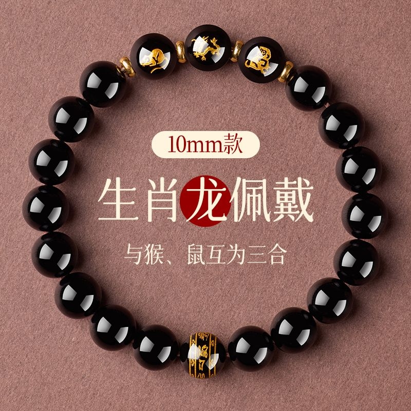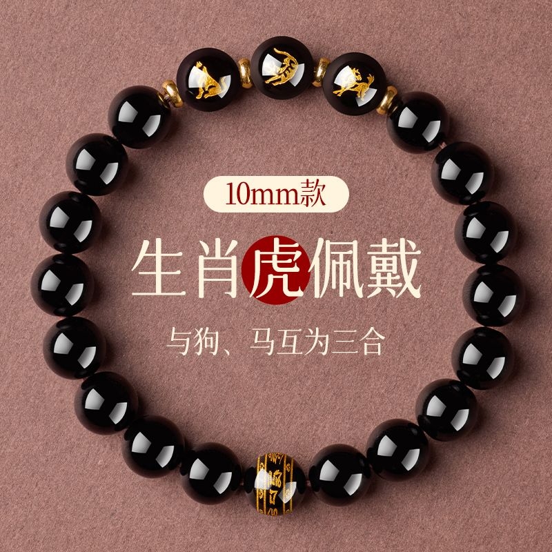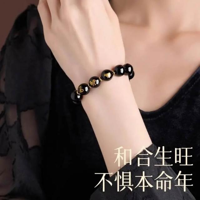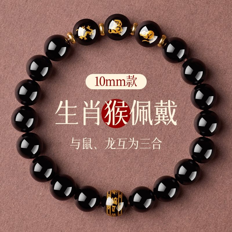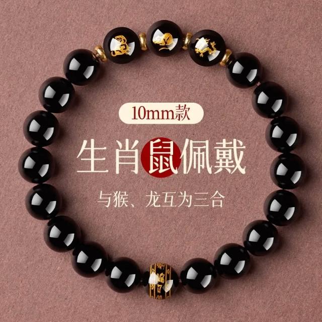普陀山黑曜石手串十二生肖本命護身符三合六合蛇年本命年手鍊女