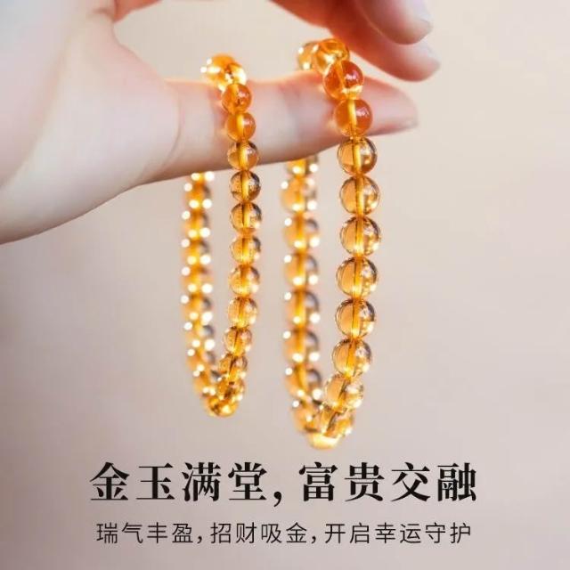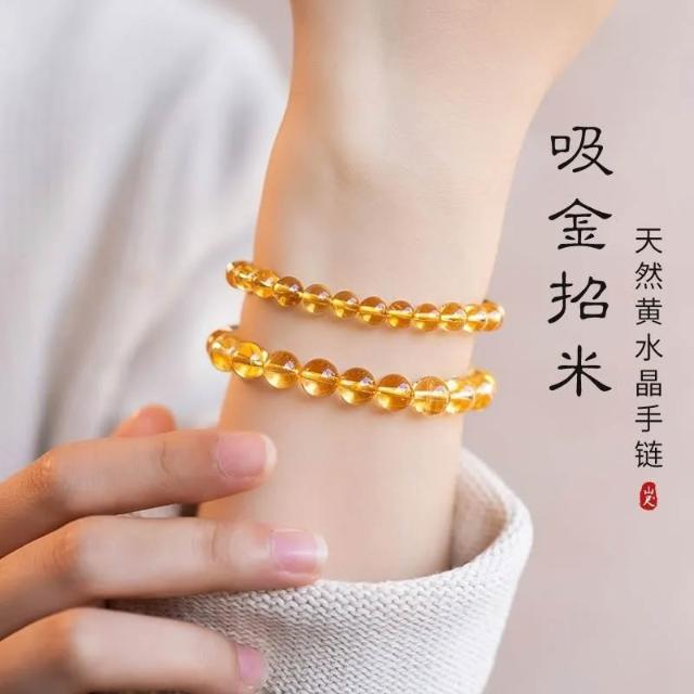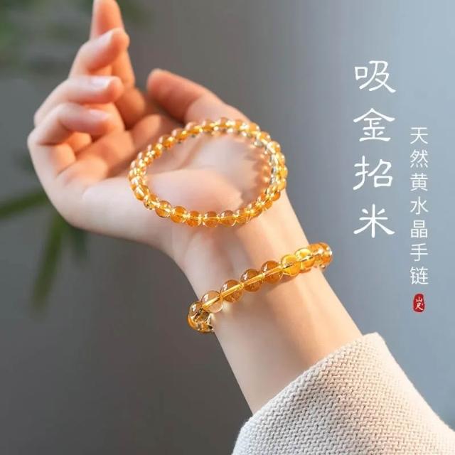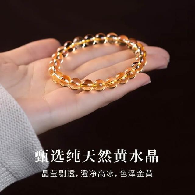 天然黃水晶手鍊聚財轉運發晶手串冰透玉石黃色生日禮物串珠盞黃