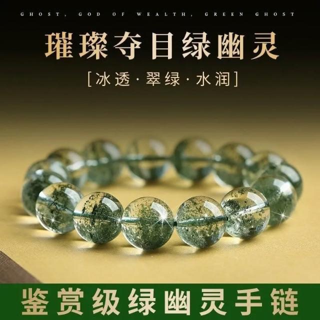 天然雪花綠幽靈手串招財手鍊聚寶盆防輻射綠水晶男女送禮