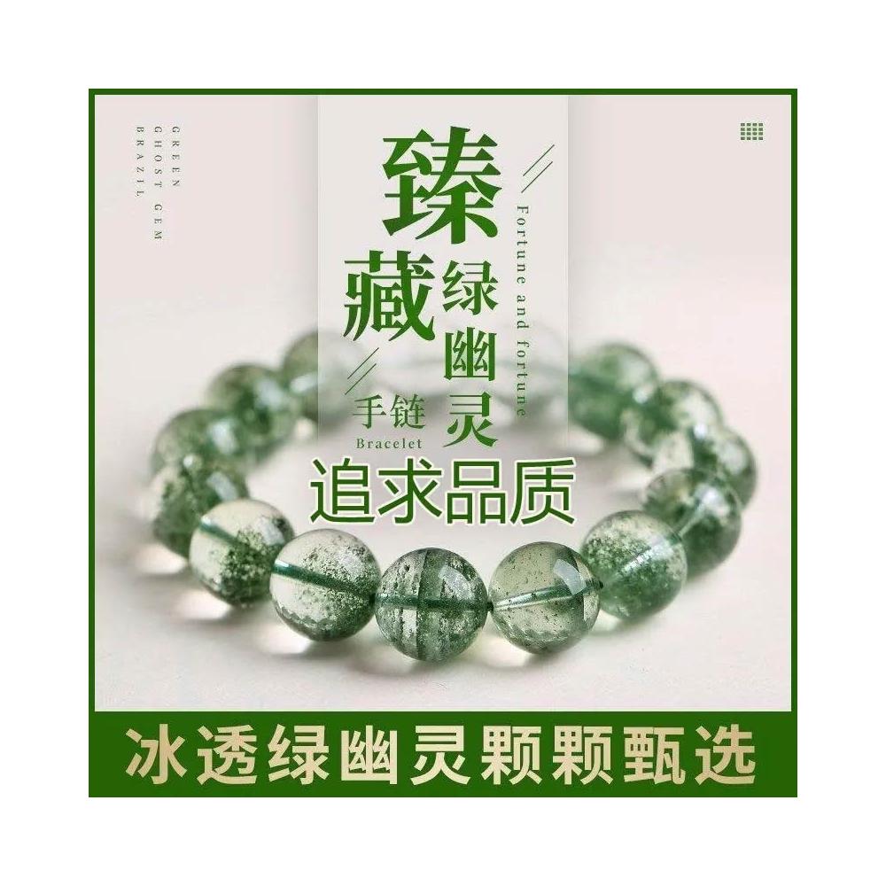 天然雪花綠幽靈手串招財手鍊聚寶盆防輻射綠水晶男女送禮