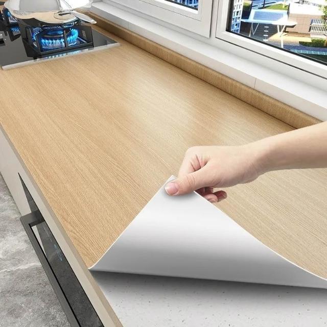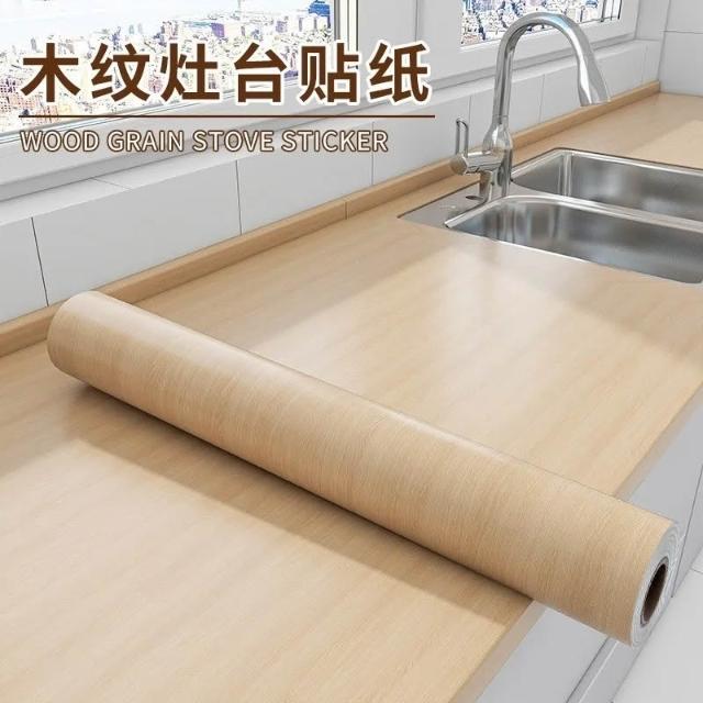 加厚木紋厨房台面贴纸 防油防水自粘貼 翻新改造贴膜 灶台专用保护垫 防潮貼 桌貼 櫥櫃貼 門貼皮 翻新防潮墻壁紙