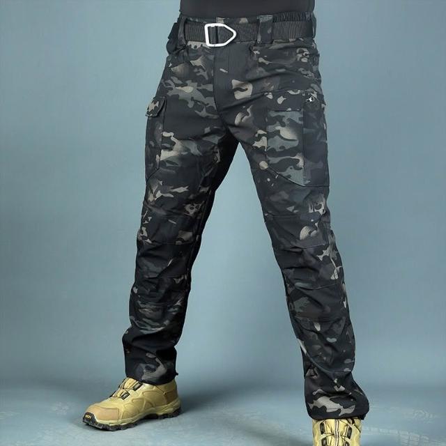 男士戰術工裝褲黑色彈力修身防水戰術春鞦厚款衝鋒褲防風防水作訓褲寬鬆運動執政官男登山長褲