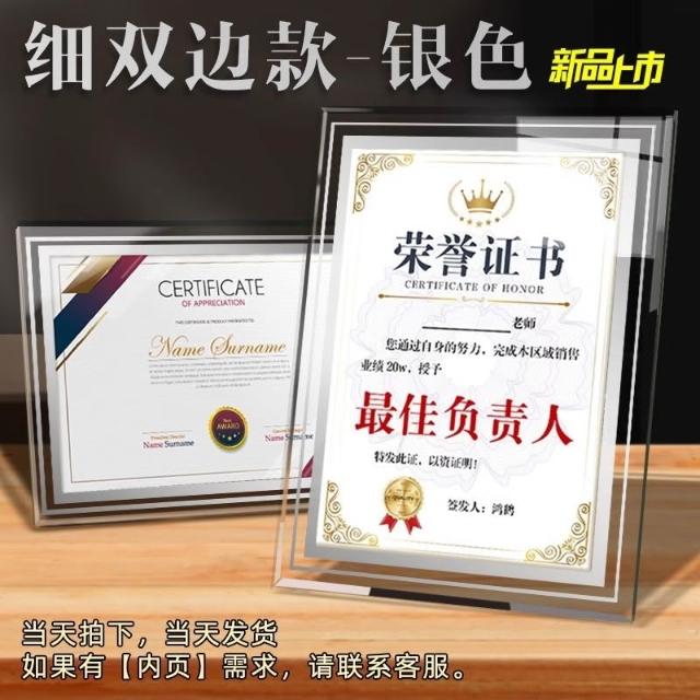 A4壓克力相框 菜單架獎狀框 擺臺證書框 展示框 立牌臺牌 展示牌 營業執照框 亞克力相框 獎狀裱 框證書展示框