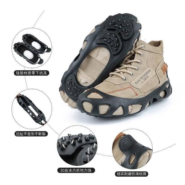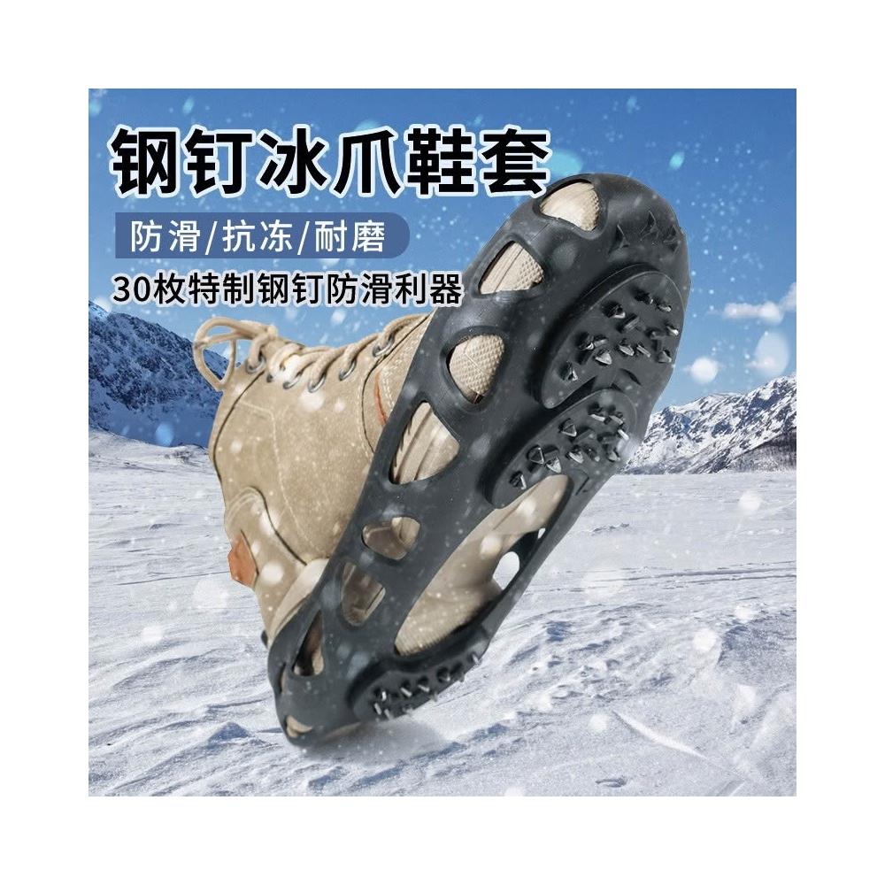 30齒冰爪 新款硅膠冰爪 雪地防滑冰爪鞋套 冬季防滑鞋套冰爪 雪地防滑冰爪 戶外攀巖 10齒不鏽鋼冰爪 攀冰鞋套 冰爪