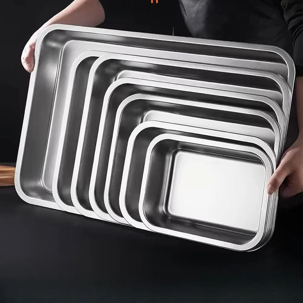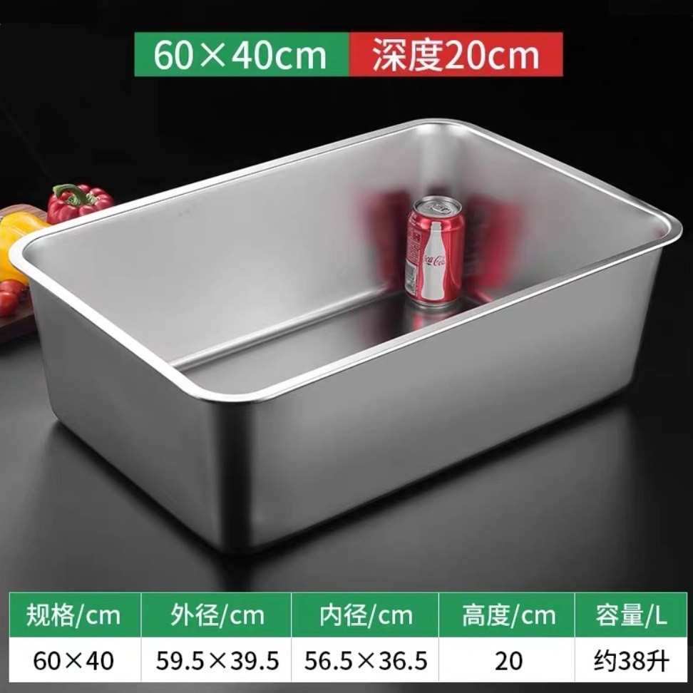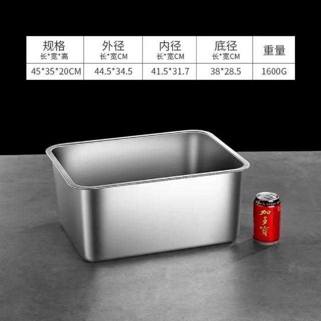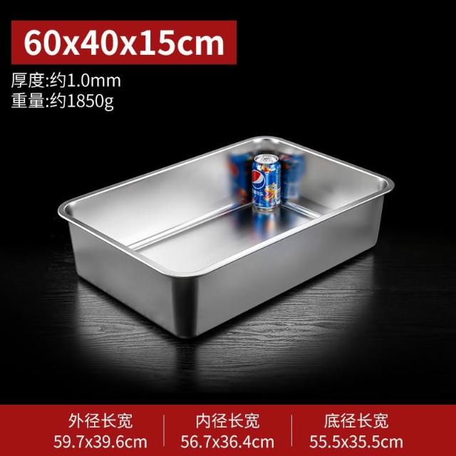 304不銹鋼方盆 長方形方盤 自助餐份數盆 加深託盤 快餐菜盆 帶蓋方盒 加厚平底方 加深托盤快餐菜盆帶蓋方盒