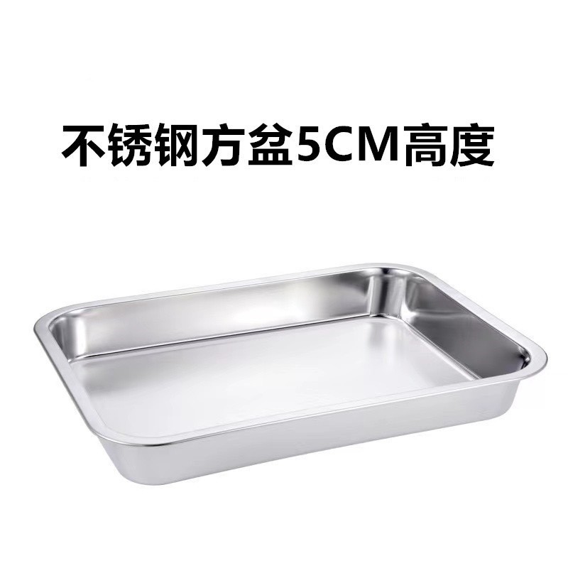 304不銹鋼方盆 長方形方盤 自助餐份數盆 加深託盤 快餐菜盆 帶蓋方盒 加厚平底方 加深托盤快餐菜盆帶蓋方盒