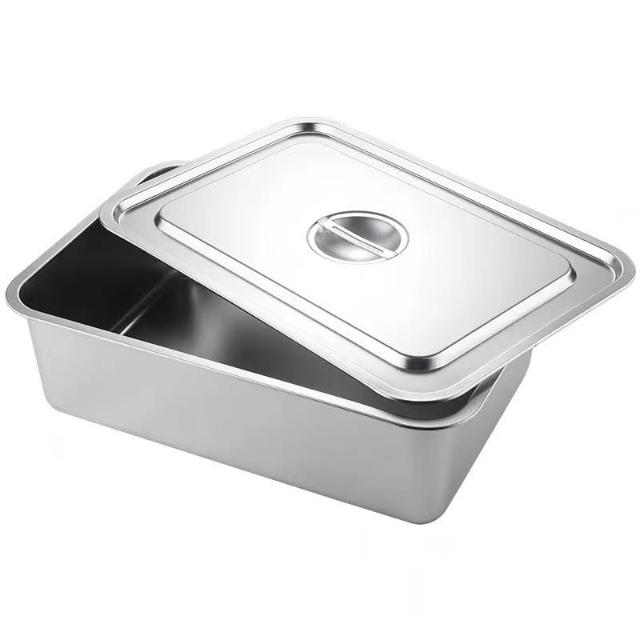 304不銹鋼方盆 長方形方盤 自助餐份數盆 加深託盤 快餐菜盆 帶蓋方盒 加厚平底方 加深托盤快餐菜盆帶蓋方盒