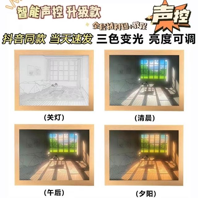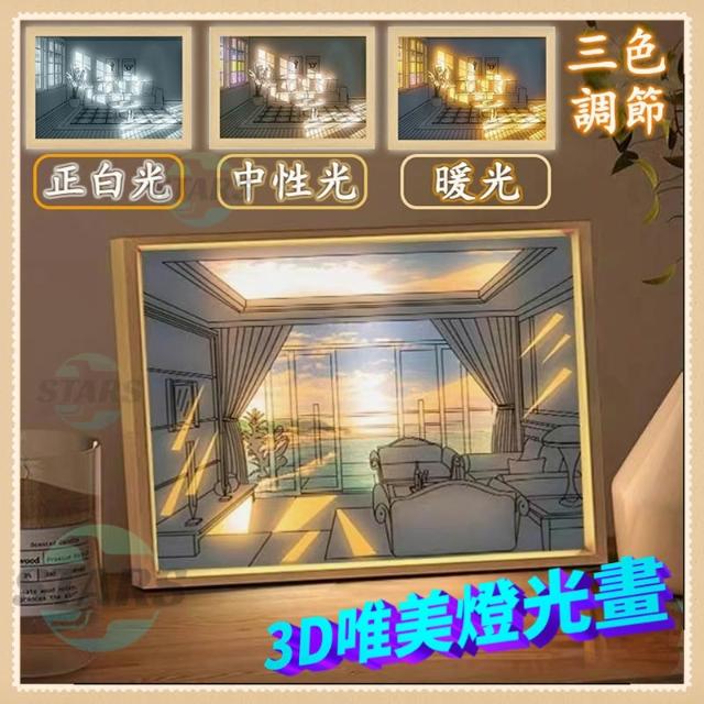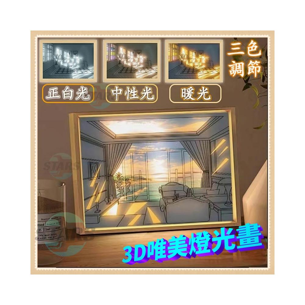 燈光畫 會發光的畫 LED 三色燈光 裝飾畫 裝飾臺燈 氛圍燈 創意小夜燈 交換禮物 擺件 生日禮物