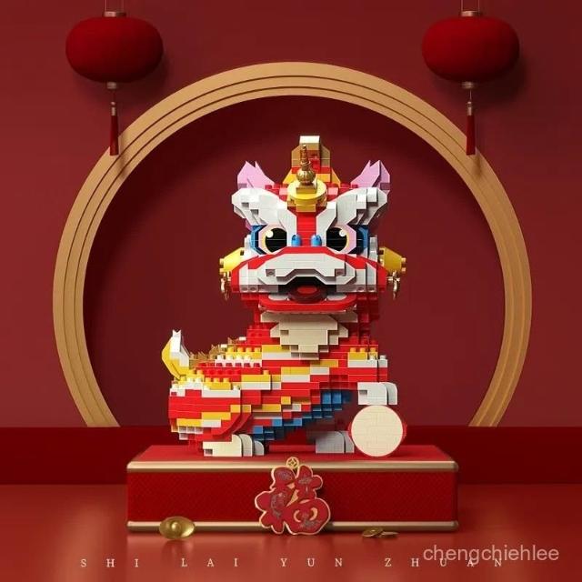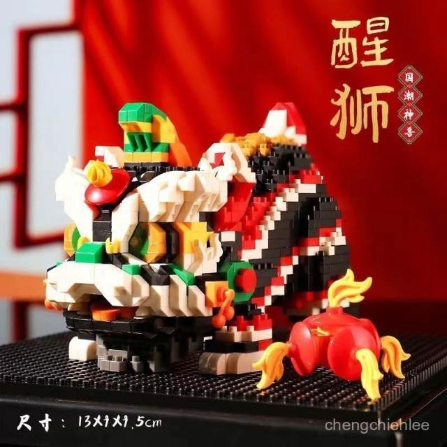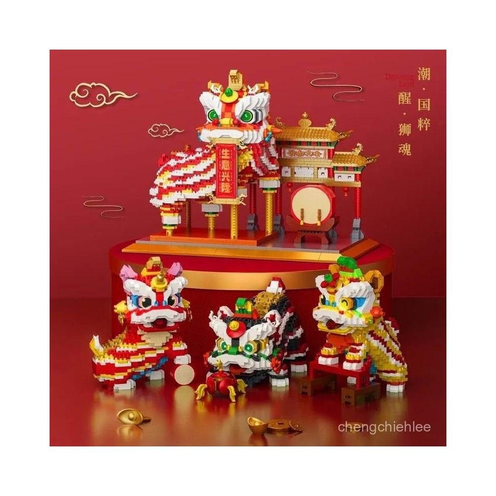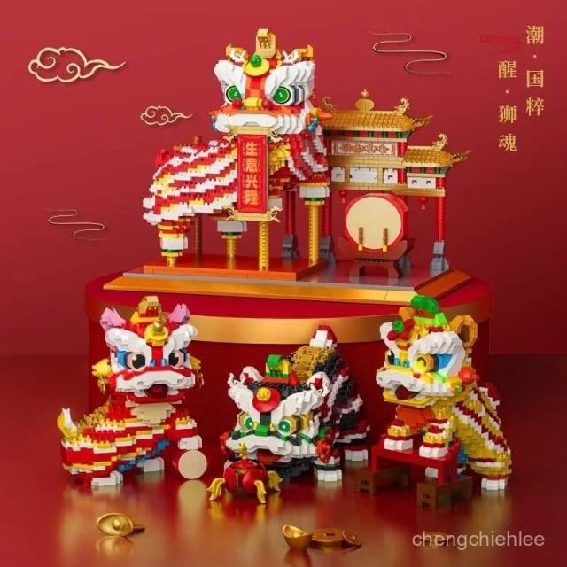 🔥免運🔥 積木 醒獅 春節 兼容樂高積木國潮醒獅高難度拚搭小顆粒拚裝積木玩具模型送禮物